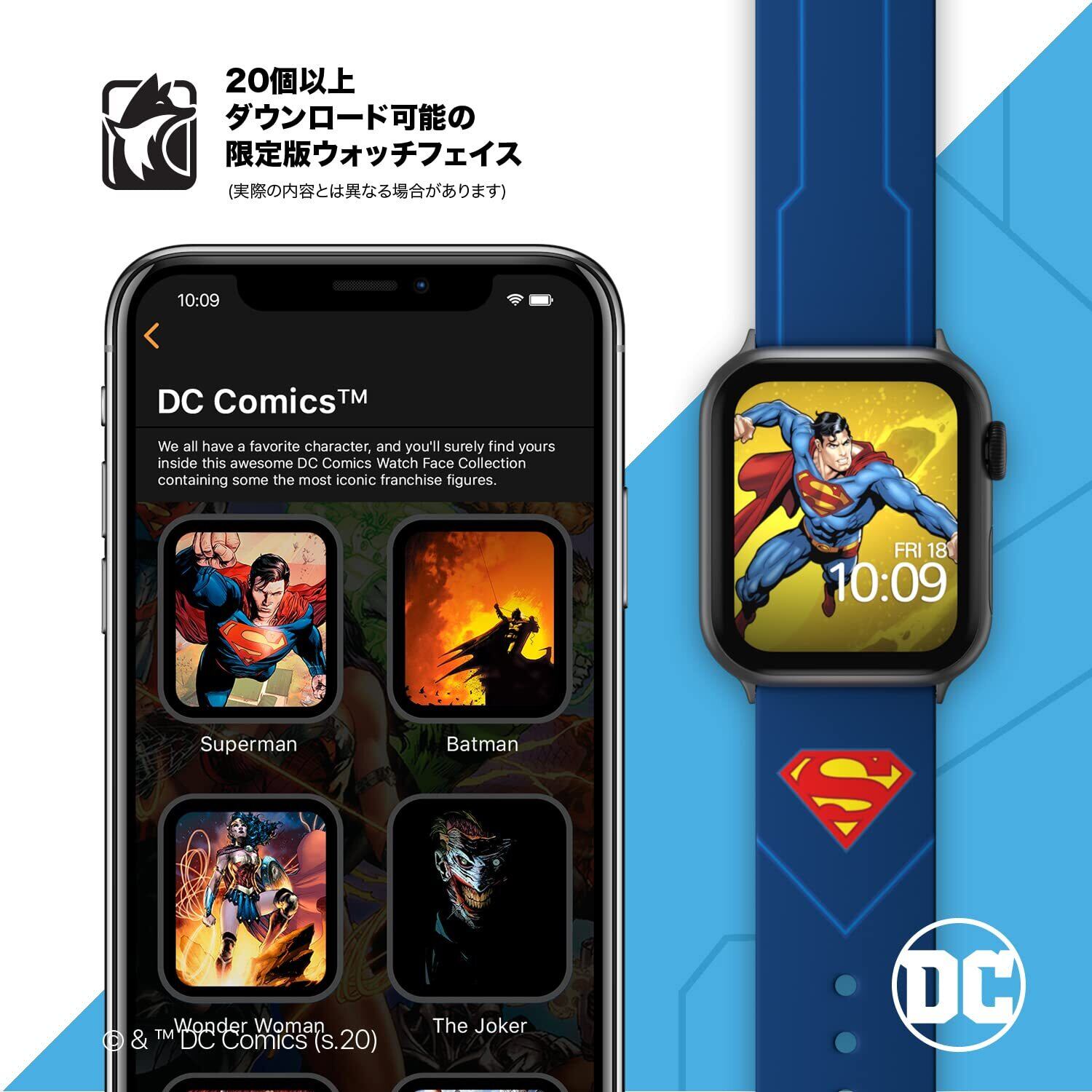 【オフィシャルライセンス】:このスマートウォッチバンドは DC Comicsの正式な認可を受けています。パッケージには、アダプターのセットが 2 つ含まれており、Apple Watch シリーズ 1、2、3、4、5、6、7、SE のケースサイズ38/40/41mm と 42/44/45 mm 、22mm ピンのある Samsung とその他のスマートウォッチに対応します。