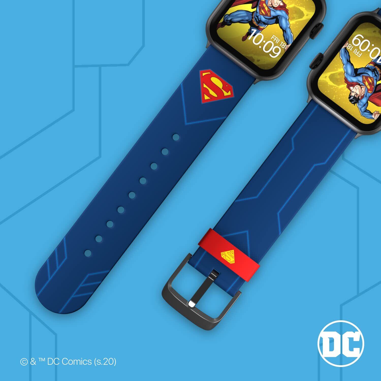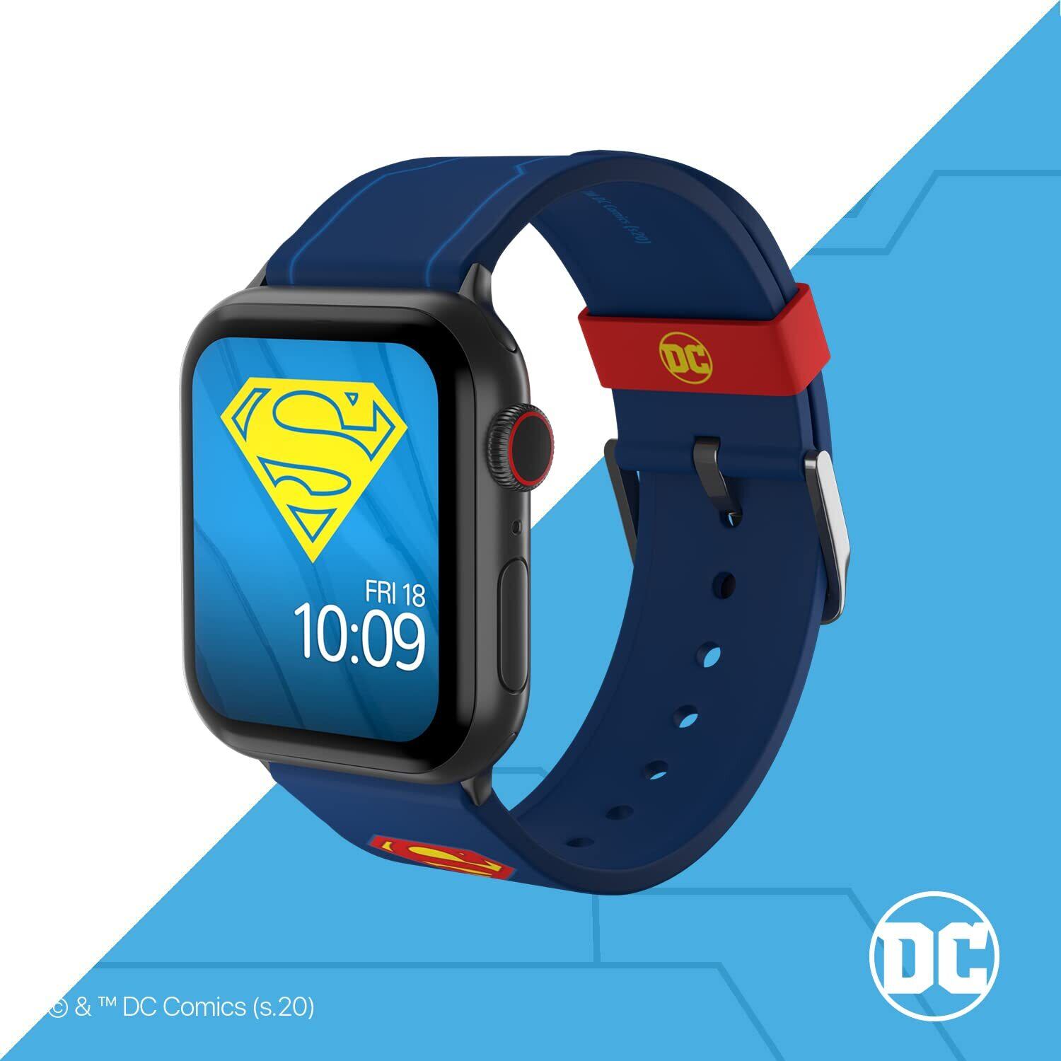 MobyFox スーパーマン Apple watch バンド、スマートウォッチ 交換 ベルト、アップルウォッチ シリーズに対応 サイズ 38mm 40mm 41mm 42mm 44mm 45mm コンパチブル アダプター、オフィシャル ライセンス、 DCコミック (ウォッチ本体は含めていません)