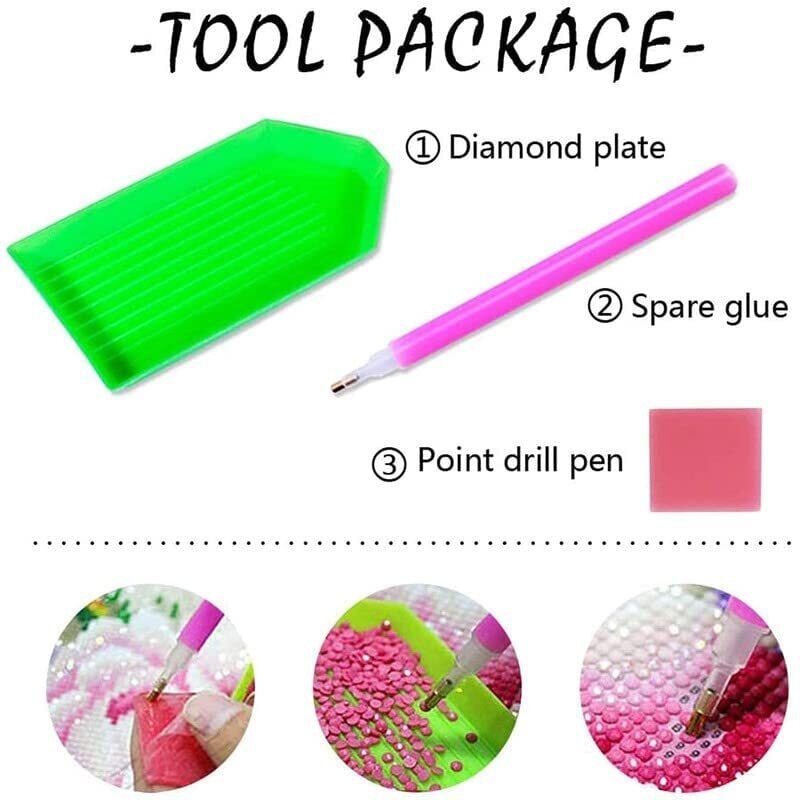 パッケージ内容:キャンバス、丸ビーズ(ダイヤモンドビーズの不足を避けるために、ビーズの数を20%-30%増やします)、1 x ダイヤモンドペン、1 x ビーズのトレー、1 x ピンクのグルー