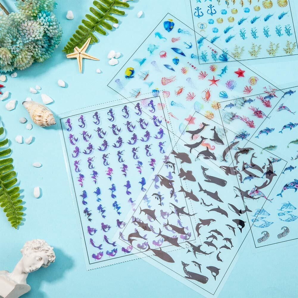 OLYCRAFT 8枚 レジン封入用 PVCフィルム イルカ 人魚 海 イラスト 粘着性なし フィルム付き レジン封入物 デコ素材 グラデーション アクセサリー パーツ 材料 手作り 手芸 DIY ハンドメイド 素材 | BASE SHOP