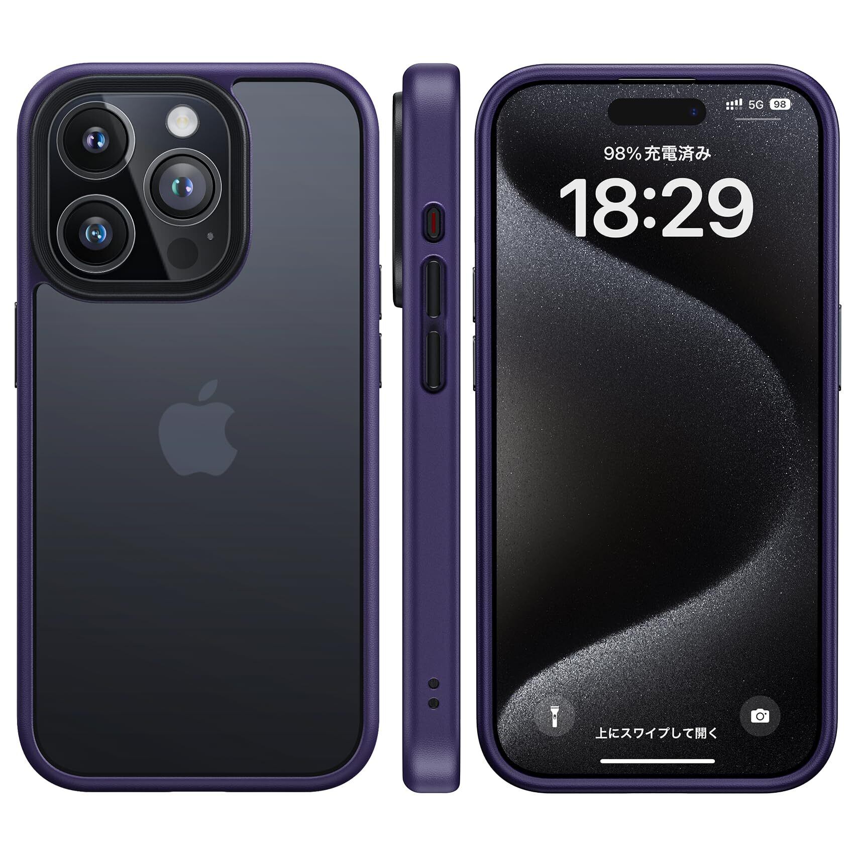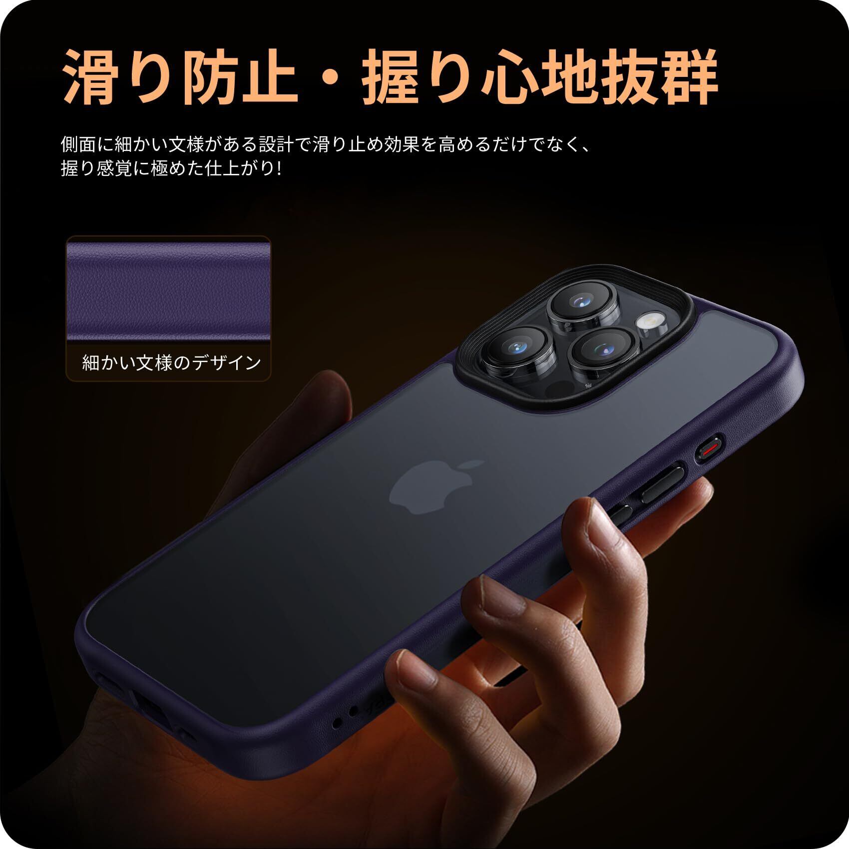 NIMASO ケース iPhone 15 Pro 用 ケース 滑り止め マット仕上げ 全面保護 耐衝撃 米軍MIL規格取得 ワイヤレス充電 ストラップホール付き アイフォン 15 プロ(6.1インチ)対応 スマホケース パープル(黒羽シリーズ)NSC23K876