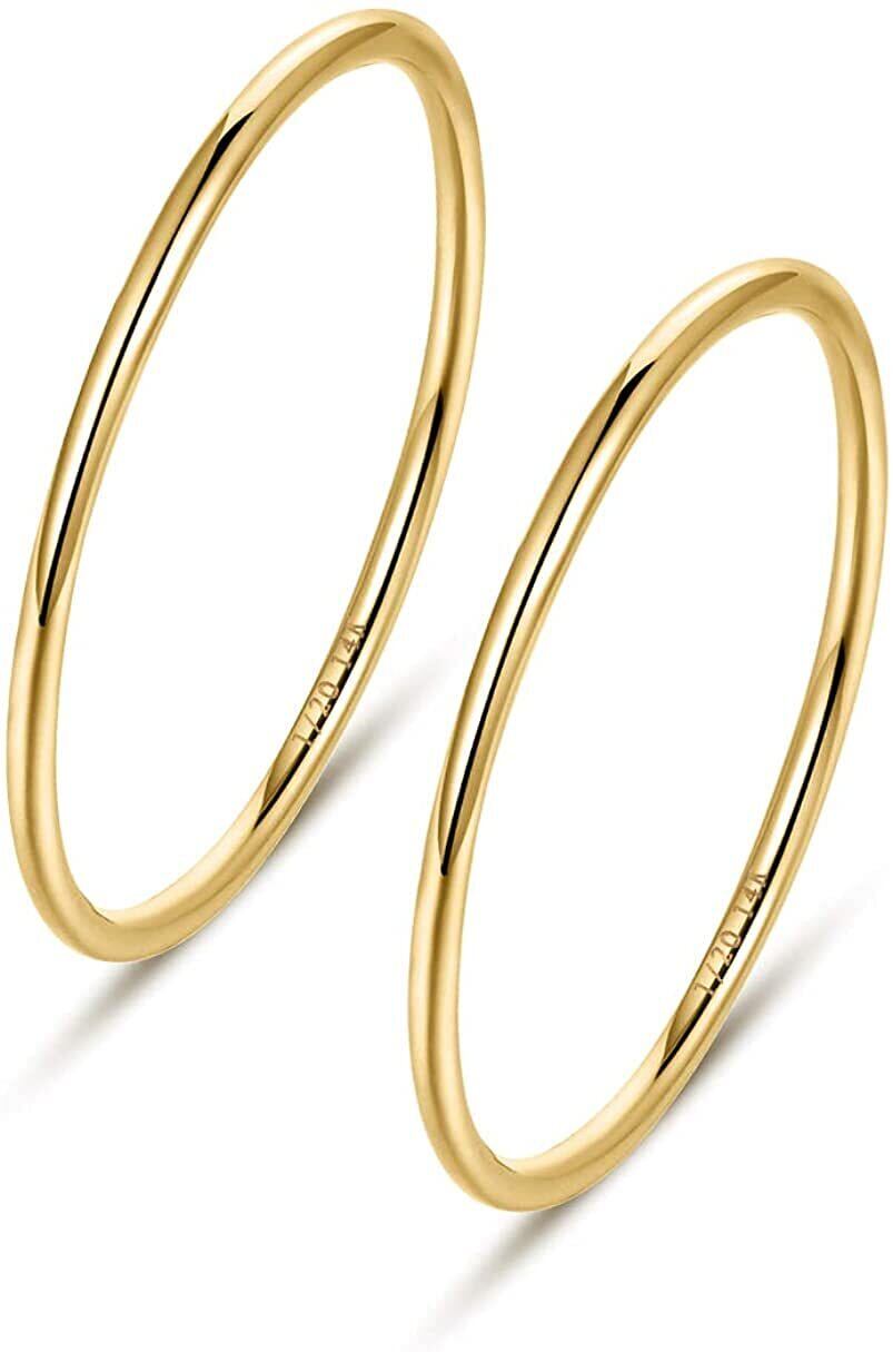 [Allencoco] 14K イエローゴールドリング 1mm 極細 自分へのご褒美に プレゼントボクス付き 14金製 人気 レディース リング 指輪 誕生日 プレゼント アクセサリー