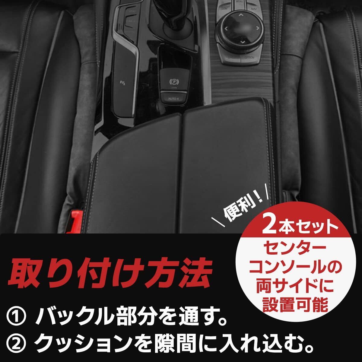 【取り付け方法】シートベルトのバックルを切れ目に通してから、挟み込むだけで設置完了です。便利な2個セットなので運転席、助手席両方に取付できます。幅広い車種対応型のクッションです。メーカー、国内車、輸入車問わず幅広く設置が可能です。