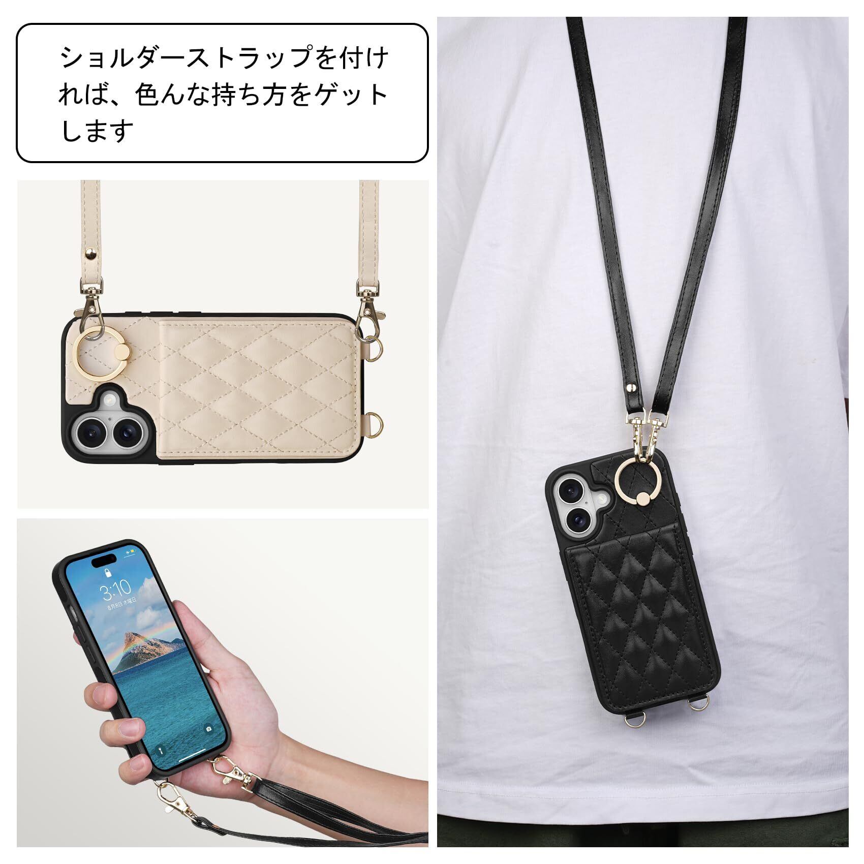 【対応機種】縦置き機能付きで、ショルダーストラップが同梱されており、首や肩に掛けられます。信頼性の高い素材を使用し、背面にはマグネットタイプの収納機能がある iPhone 16 Plus 用手帳型ケースです。どうぞ対応機種と画面サイズをよくご確認のうえ、ご購入ください。