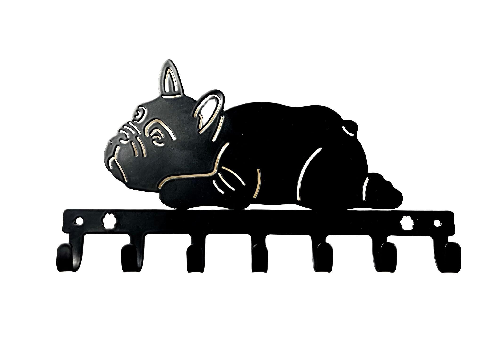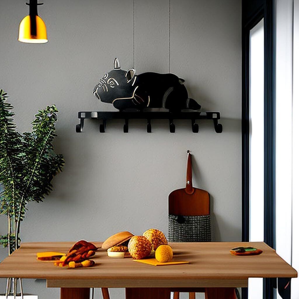 Ctpeng 7フック、壁掛けフック、ペットモチーフキーフック - 犬&猫デザイン、鍵・小物用ハンガー、高耐荷重ウォールラック、コート・帽子・タオル掛け、キッチン 収納、鴨居フック、ブラック (カジュアル)
