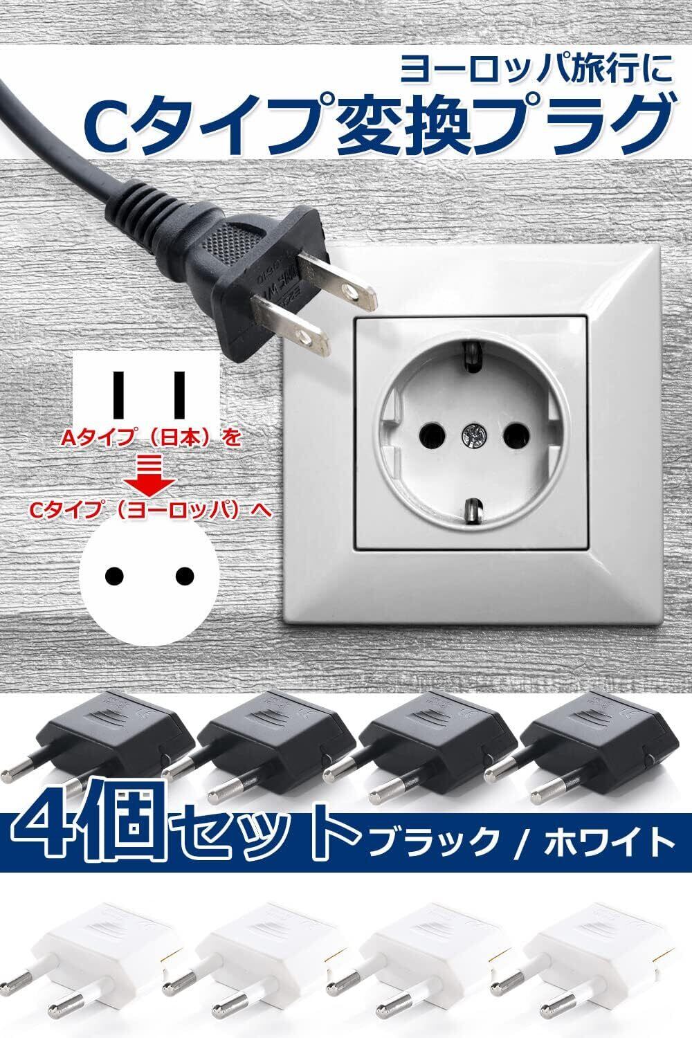 ヨーロッパ 変換プラグ Cタイプ [4個セット] 【 ヨーロッパ/韓国/スペイン/フィンランド などに対応◎】コンセント変換アダプタ 海外旅行用 電源変換プラグ (ホワイト)