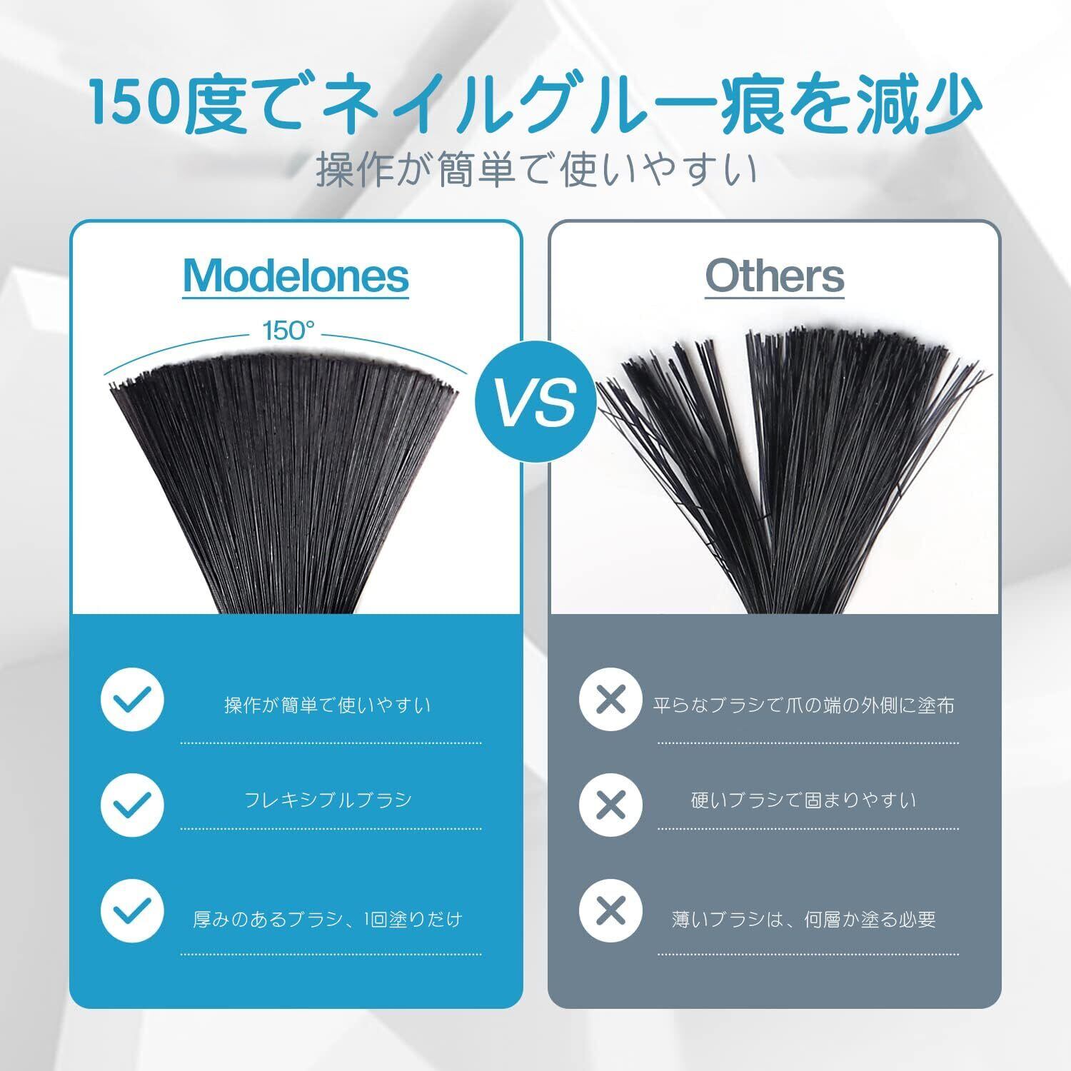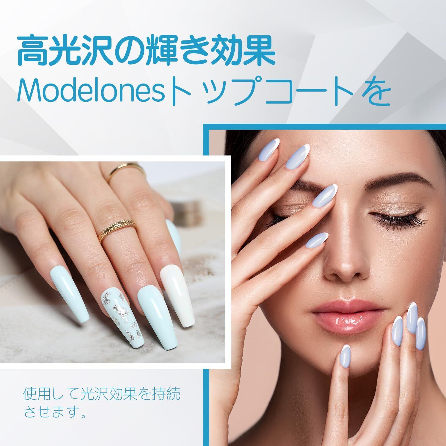 28日以上の長持ち:Modelonesのベースとトップコートジェルは正しく使うと28日以上ジェルネイルを長持ちさせることができます。 ベースコートは薄く均一に塗って、ツヤが長持ちし、傷がつきにくいことができます。 ナチュラルネイル、U Vジェルネイル、人工ネイル、アクリルネイル、ネイルチップなどにも適用します