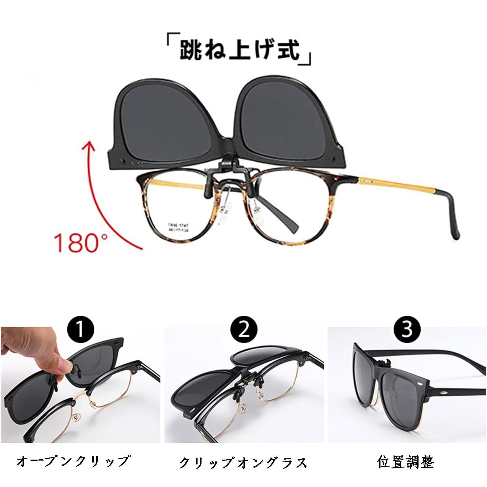 [FF FRAZALA] クリップオン サングラス 偏光 サングラス メガネにつける クリップオン 前掛けクリップ式サングラ 跳ね上げタイプ UVカット運転 屋外の活動用 男女兼用