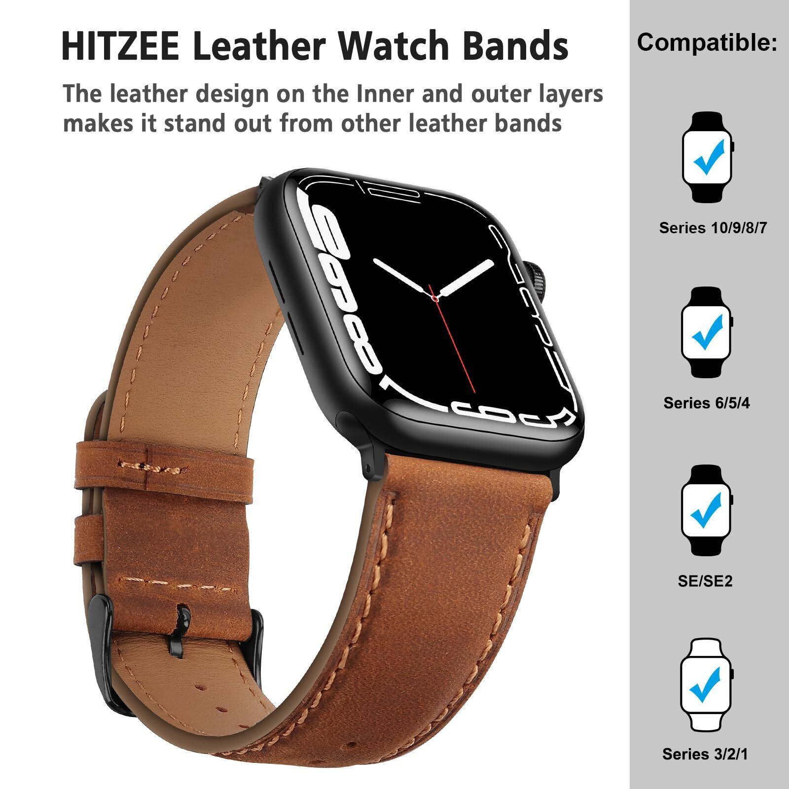 アップルウォッチ対応のレザーバンド: HITZEE レザー交換用時計ストラップは、Apple Watch バンド 42mm(シリーズ 10) 41mm 40mm 38mm のすべてのモデルと互換性があります。SE (2022) / SE (2020) / シリーズ 10 / シリーズ 9 / シリーズ 8 /シリーズ 7 / シリーズ 6 / シリーズ 5 / シリーズ 4 / シリーズ 3 / シリーズ 2 / シリーズ 1