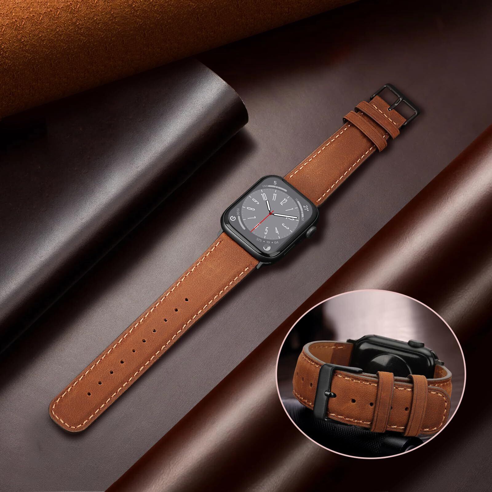 HITZEE アップルウォッチ バンドレザー コンパチブル Apple Watch バンド 42mm 41mm 40mm 38mm, 本革交換ストラップ Apple Watch SE2 SE シリーズ10 9 8 7 6 5 4 3 2 1に対応 (ブラウン)
