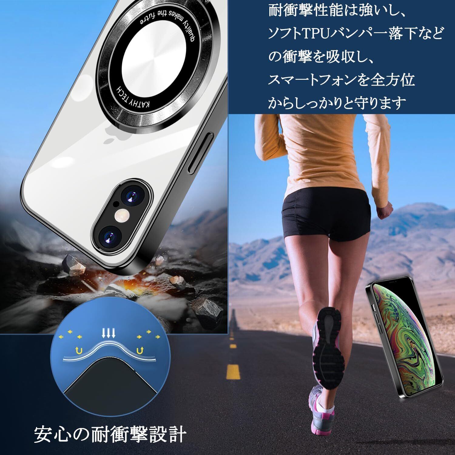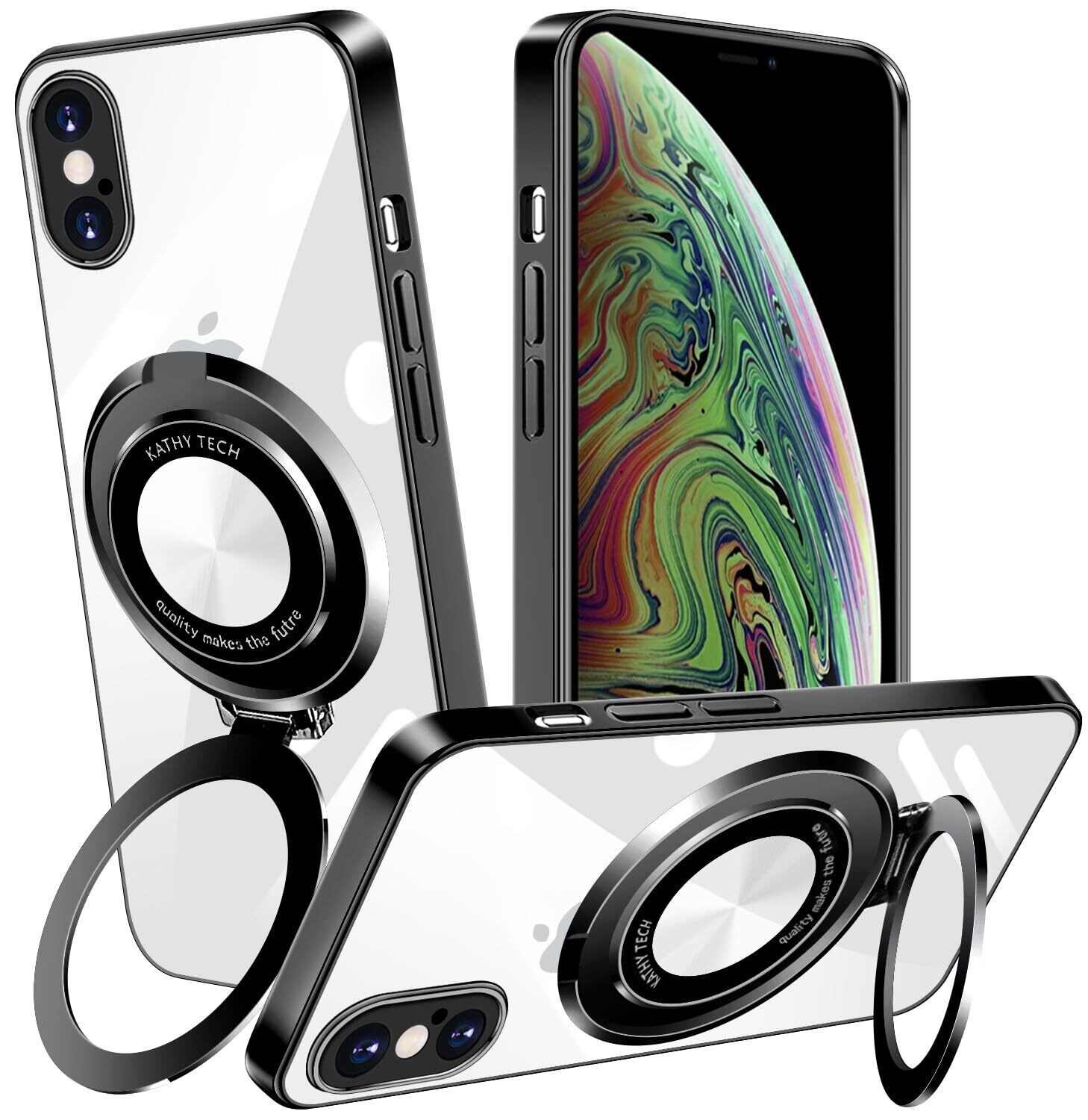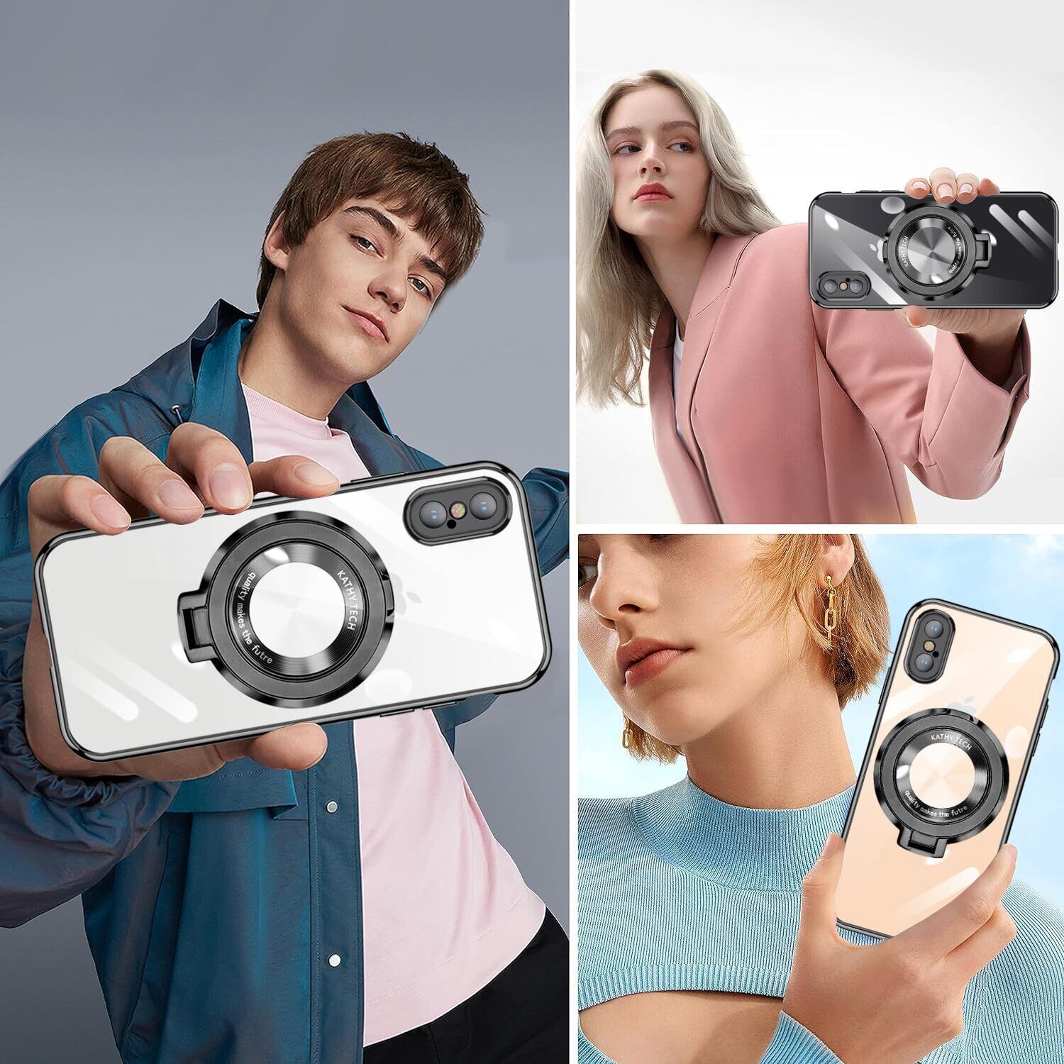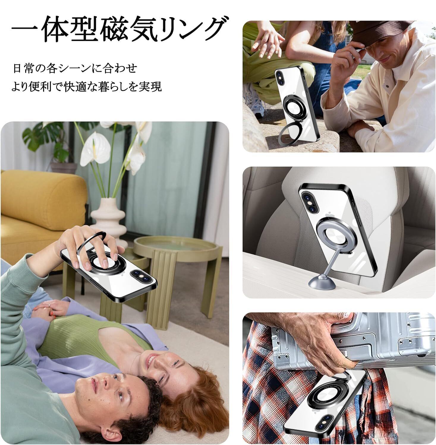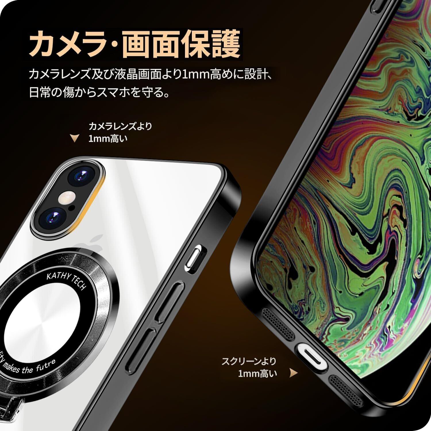 iPhone XS 用 ケース iPhone X 用 ケース クリア MagSafe対応 アイフォンXS/X カバー 縦横両対応 多機能一体スタンド 透明 TPU 耐衝撃 薄型 軽量 レンズ保護 Qi ワイヤレス充電対応 iphonexs x スマホケース(ブラック)