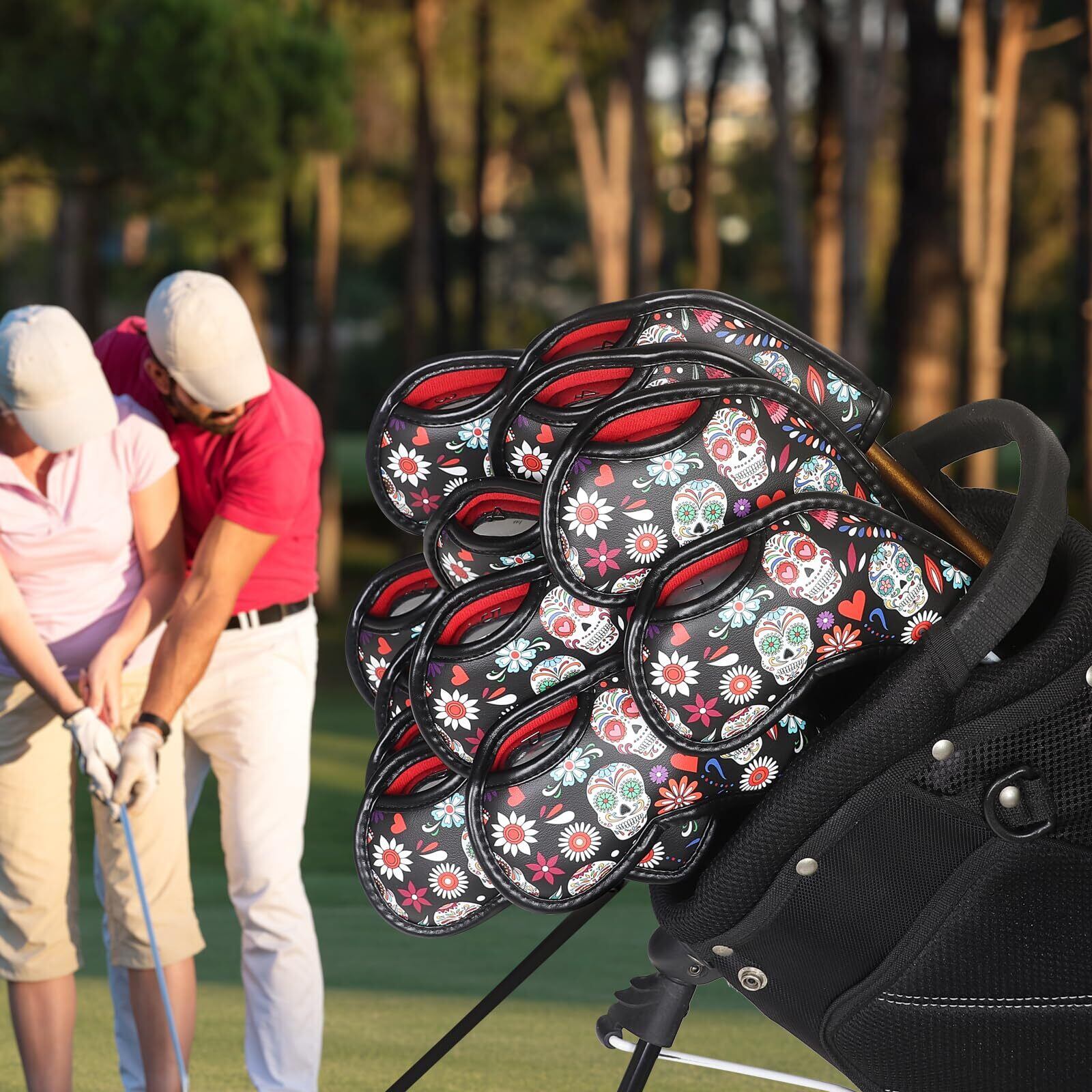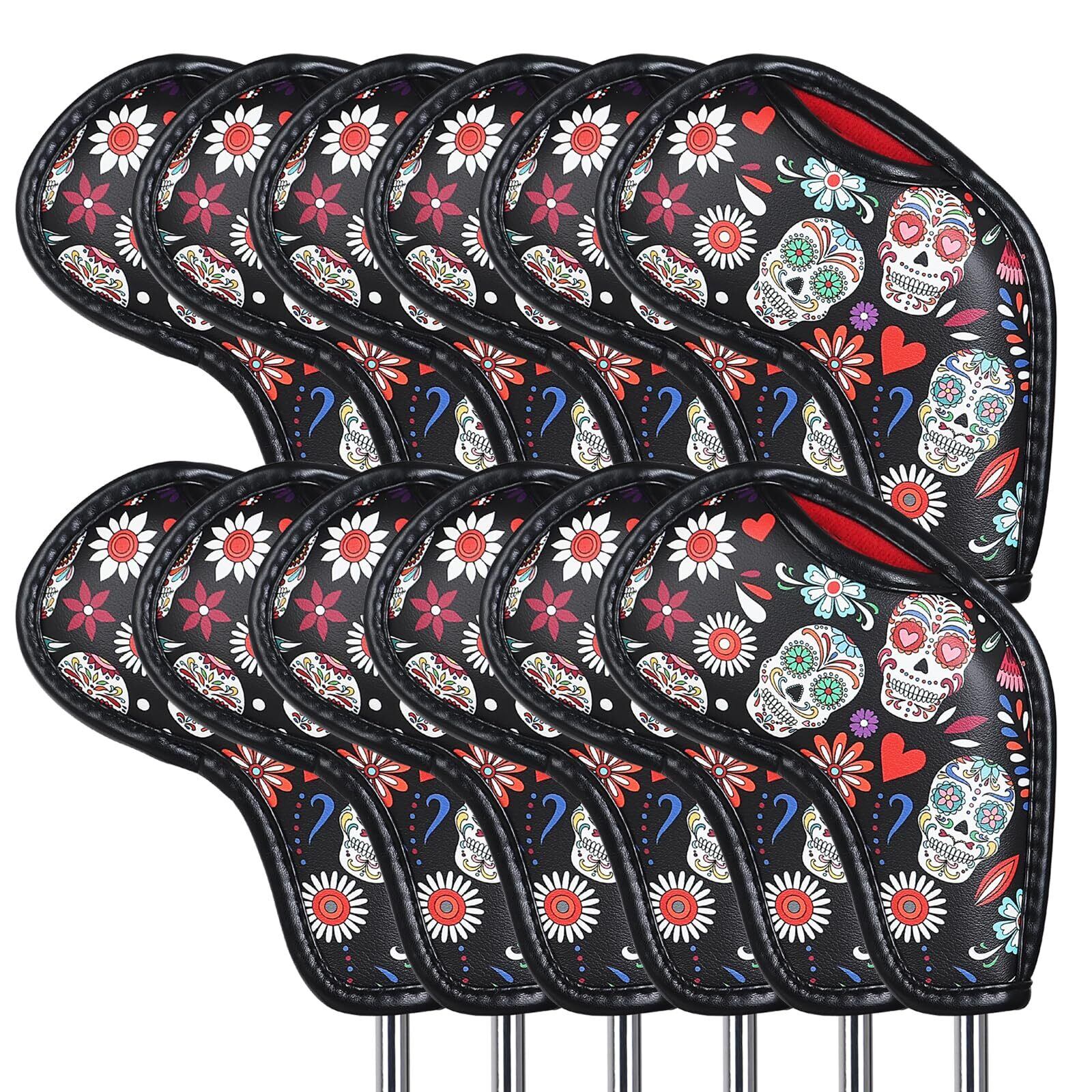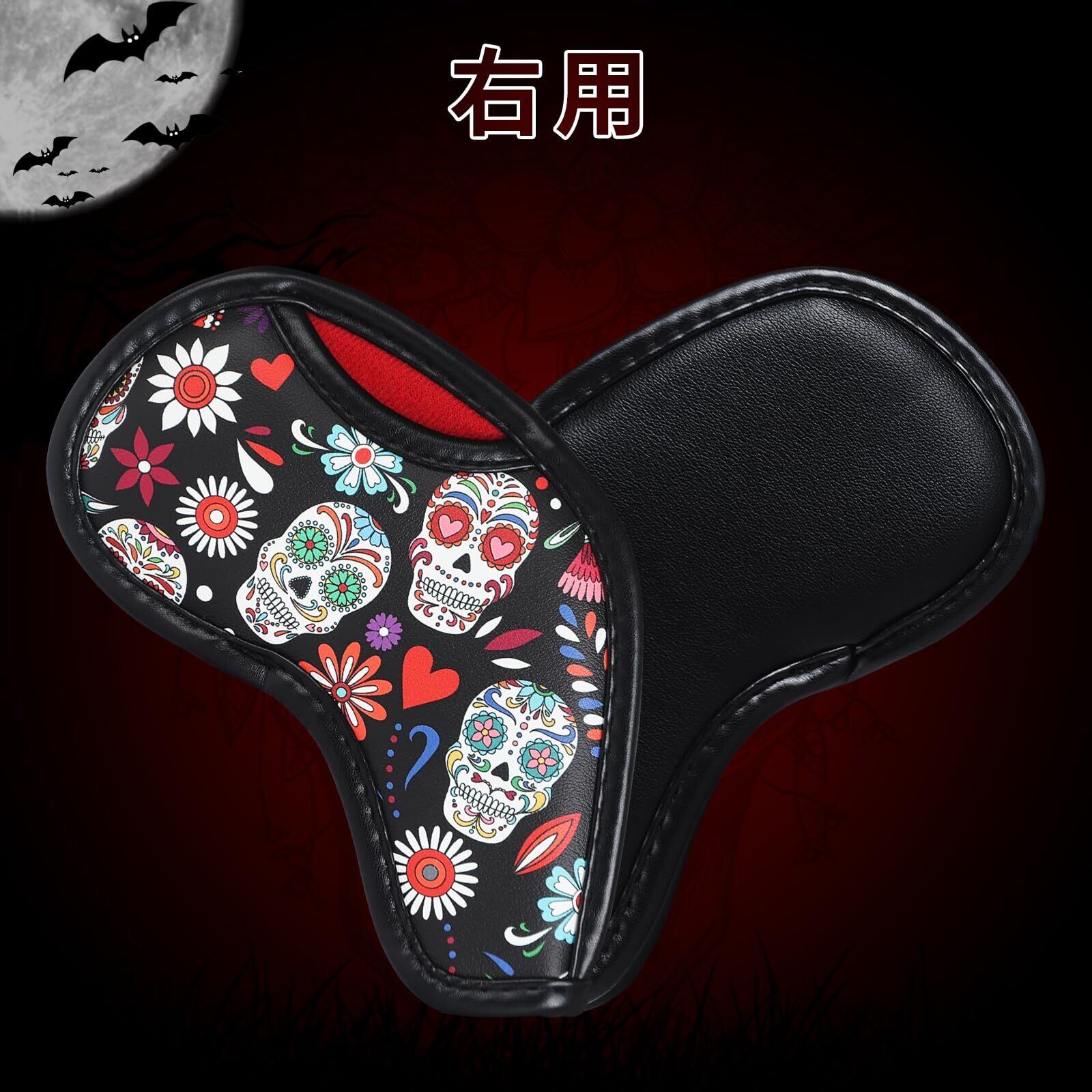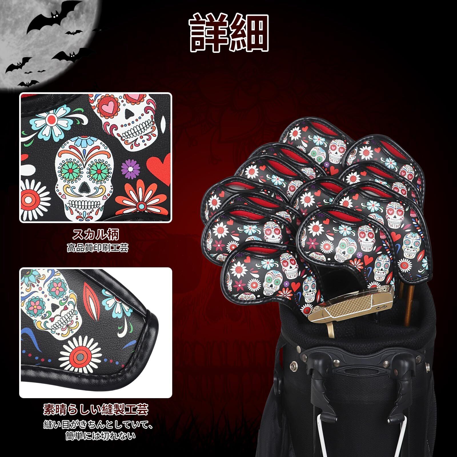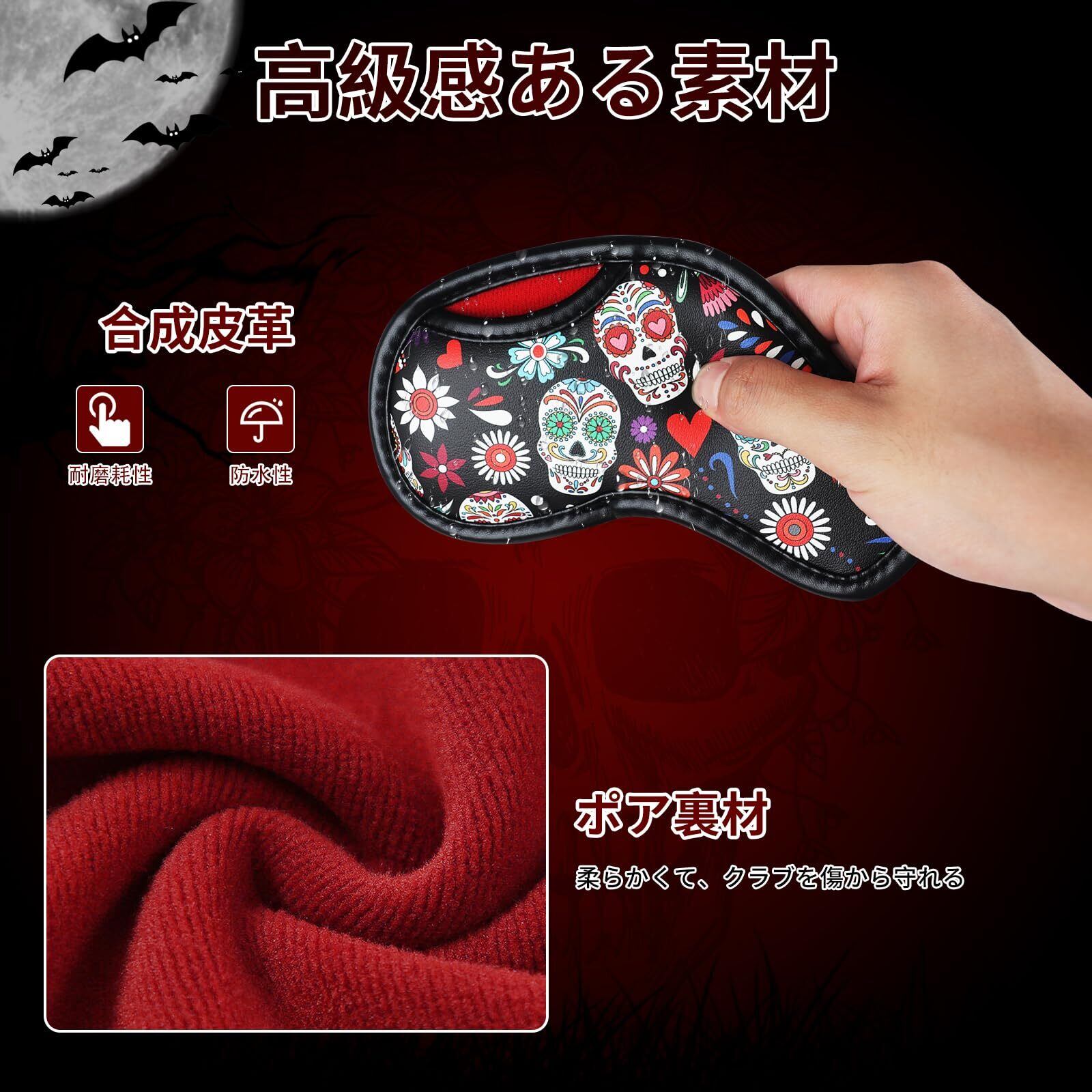 ゴルフアイアンカバー マジックテープ開閉 ウェッジカバー クラブヘッドカバー スカル柄 合成皮革