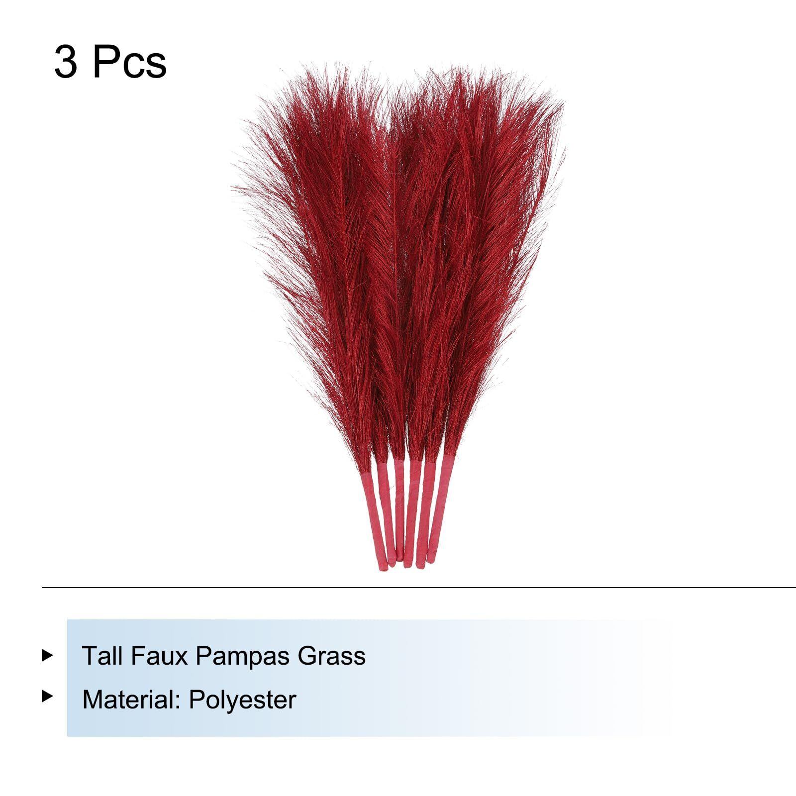 uxcell フェイクススキ 小さい 45 cm フェイクふわふわススキ 7ブランチ 人工花瓶フィラー ホーム オフィス 花瓶 結婚式の装飾用 レッド 3個