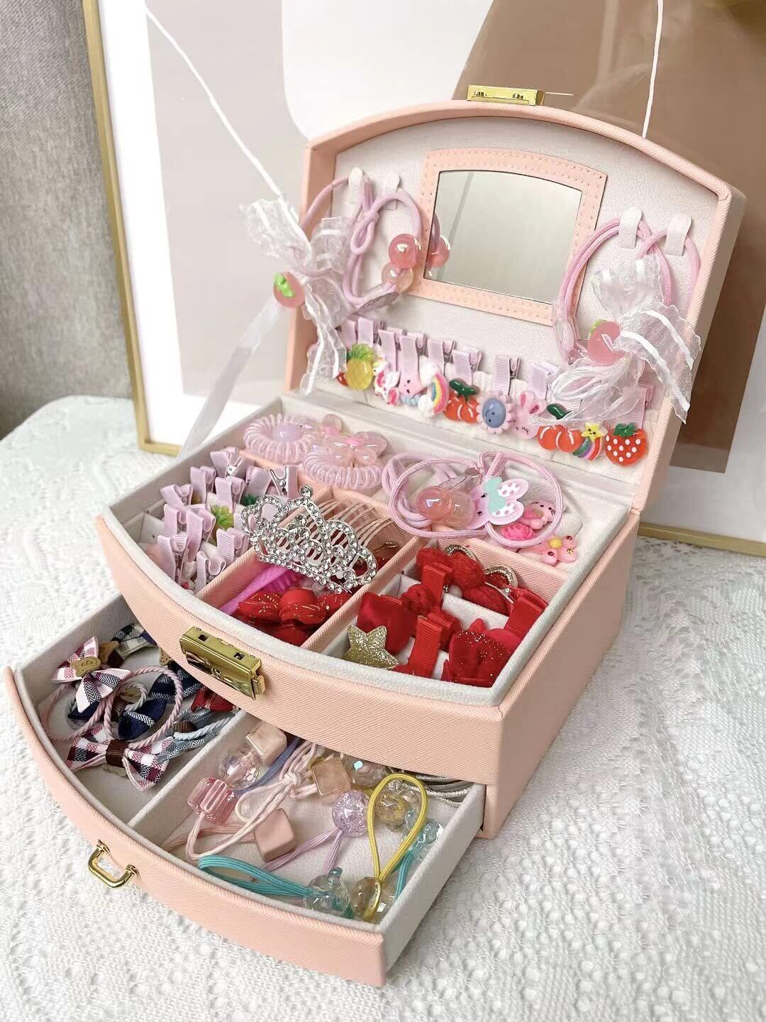 OKUSEKAY ジュエリーボックス ジュエリー収納 アクセサリーケース 女の子 女性 人気 2層 鏡付き 大容量の宝石箱 小物入れ ピアス ネックレス 指輪 イヤリング収納 母の日、クリスマス、結婚式の日、誕生日プレゼント用 (ピンク)