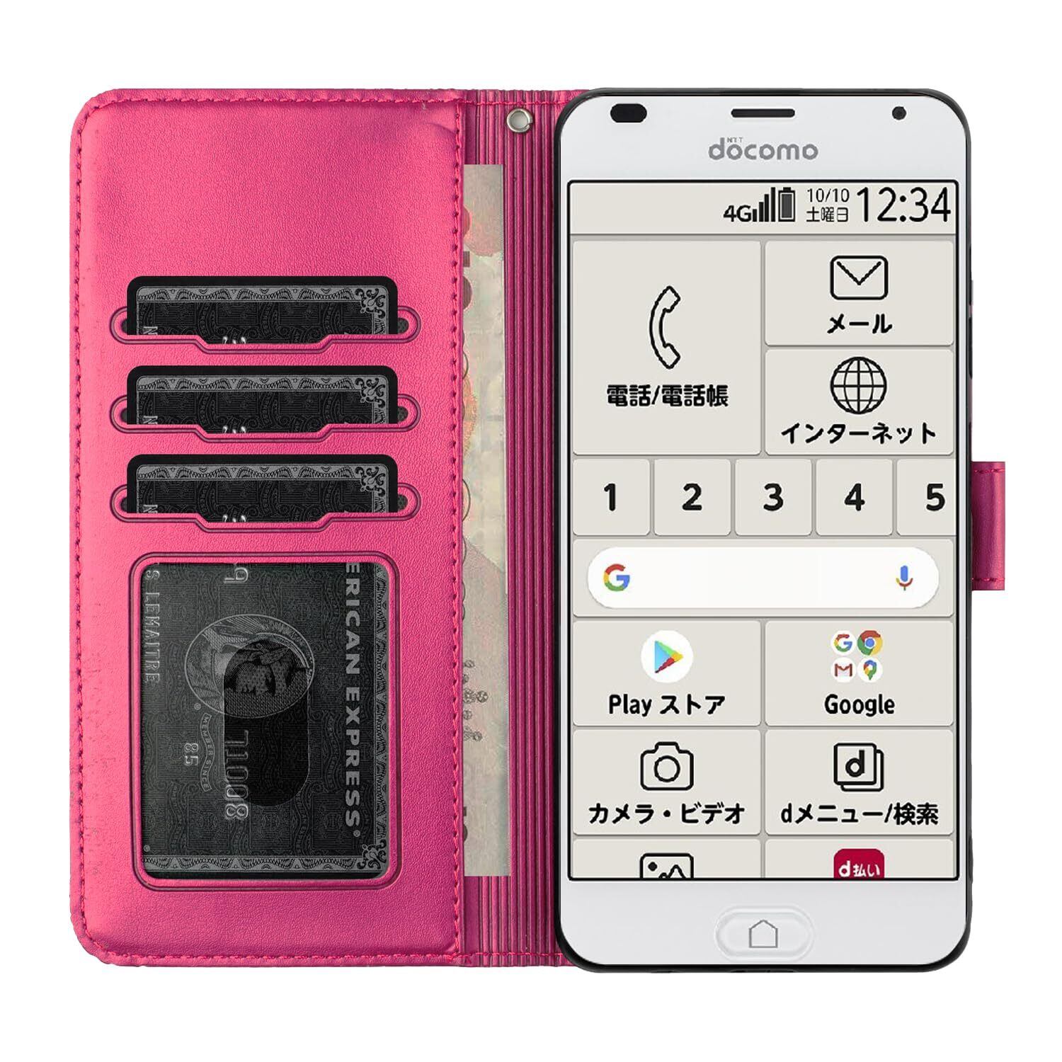 【財布型】:らくらくスマートフォンF-42A手帳型ケースの内側には4つのフリーポケットがつき(カードポケット3つ付き + 現金ポケット1つ付き)、名刺や定期券の収納に優れているらくらくF-42A通用カバー 手帳です。普段の生活に便利をもたらします。