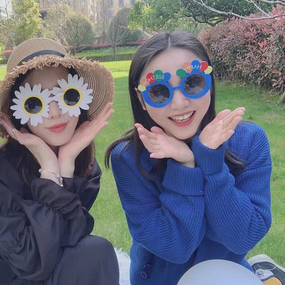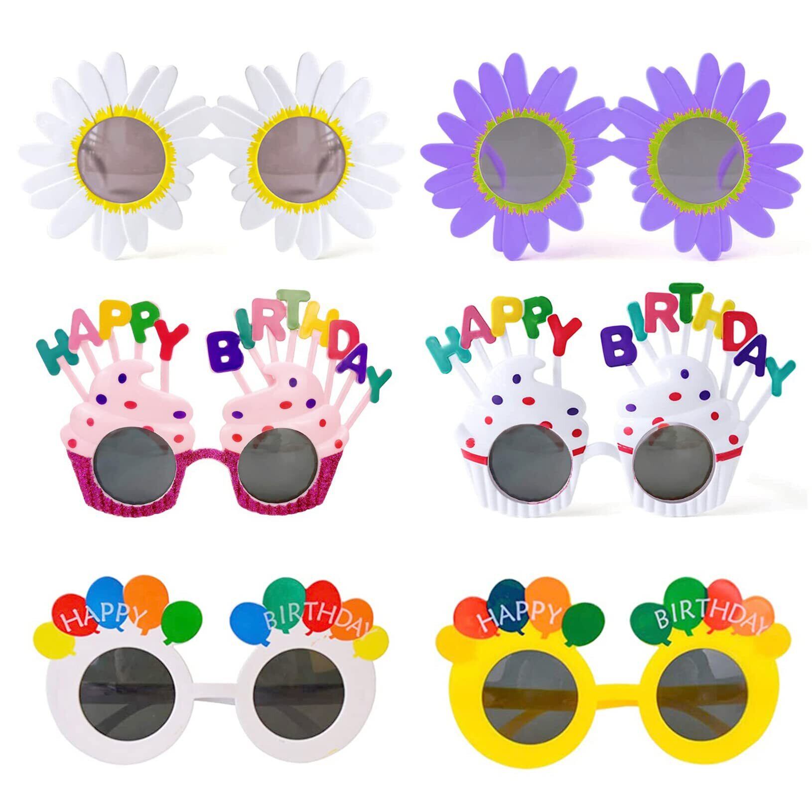 【セット内容】Happy Birthday の文字が可愛い ケーキ型 サングラス , 白いお花 , 黄色の風船をモチーフにしたサングラスの6種類セットです。