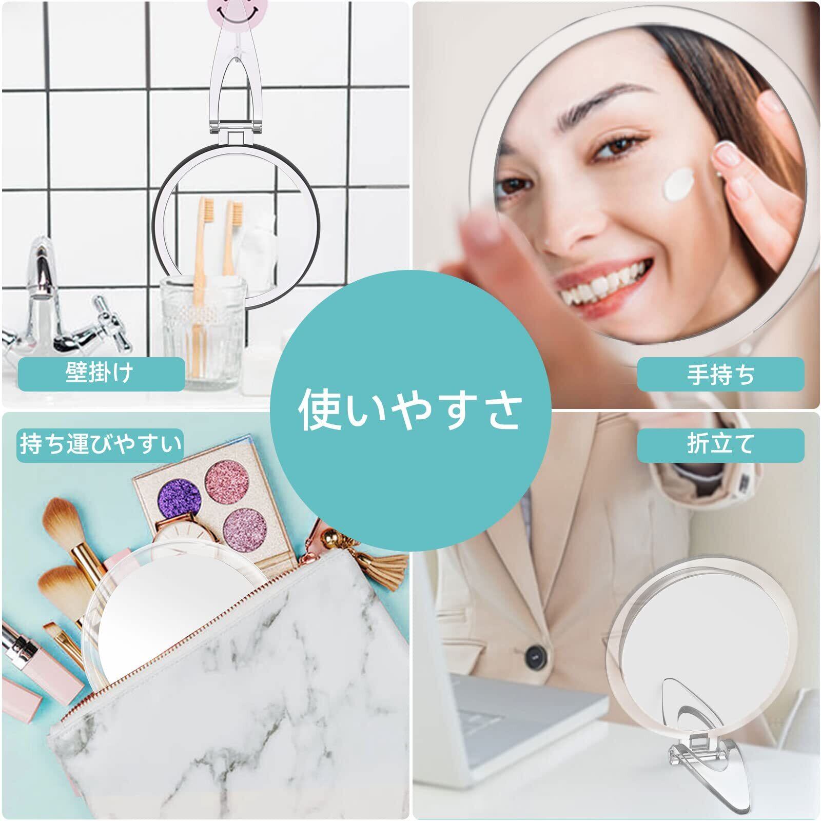 B Beauty Planet 手鏡 拡大鏡 10倍 ハンドル付き両面鏡 10倍と等倍 卓上手鏡 スタンドミラー 折り畳み式化粧鏡 円形 15CM クリア