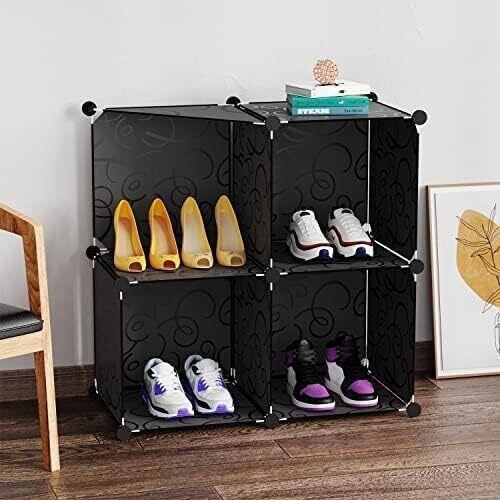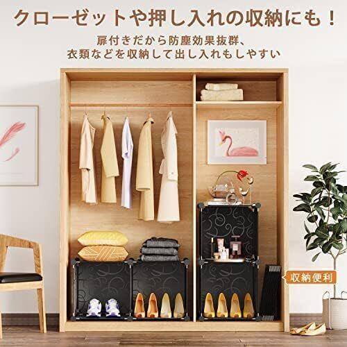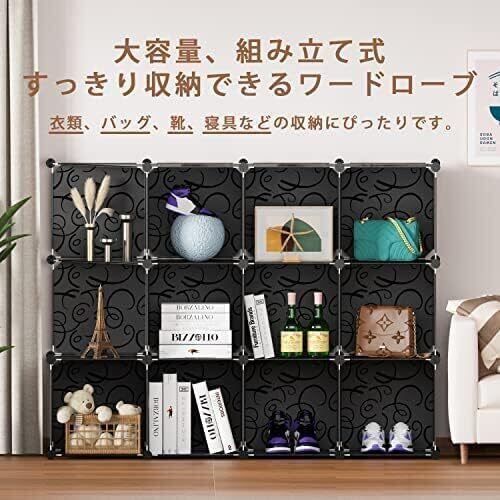 ワードローブ クローゼット 棚 収納 収納ボックス 組み立て式 衣類収納ラック 扉付き ボックス カラーボックス 組立簡単 DIY 寝室 リビング 大容量 耐久性 安定 16個セット (黒, (14+2)BOX)