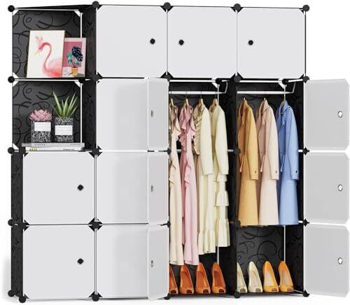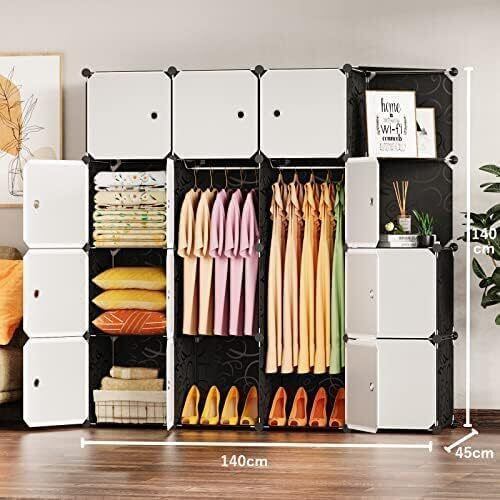 【たくさん入る!大容量】:大容量、組み立て自由自在な魔法の収納ボックス!衣類やバッグ、靴などはもちろん、部屋に散らかった小物などをすべて簡単に片付けられます。中身が見えない扉付き、散らかったお部屋もこのワードローブ一つですっきり収納。