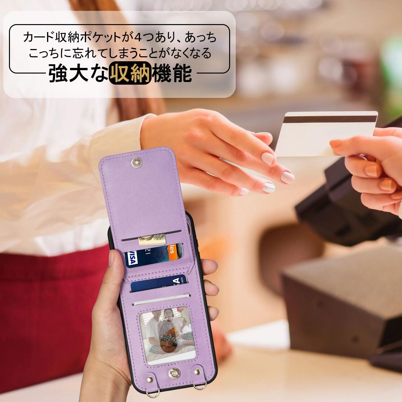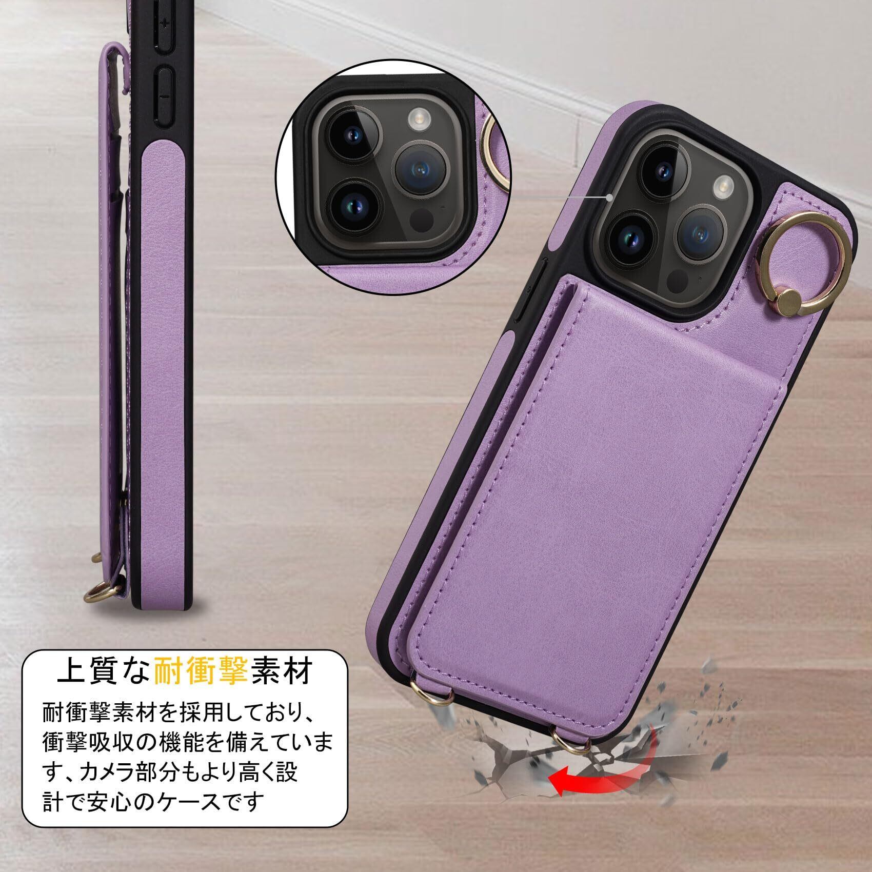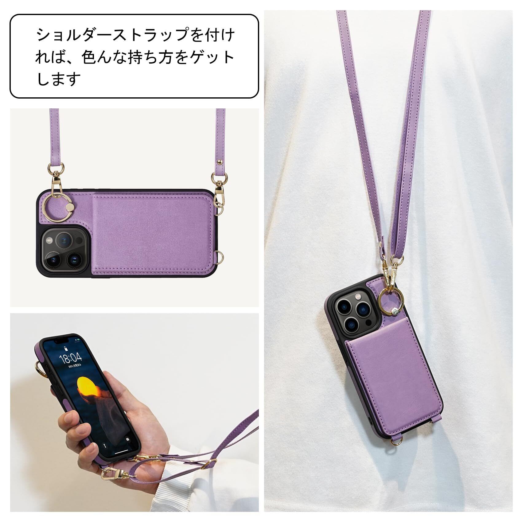 Shlybaay iPhone 15 Pro Max (iPhone 15 プロ マックス) 用 手帳型背面ケース カード収納&ストラップ付き 肩掛け 斜め掛け PUレザー マグネット対応 スタンド機能 可愛い 6.7インチ パープル