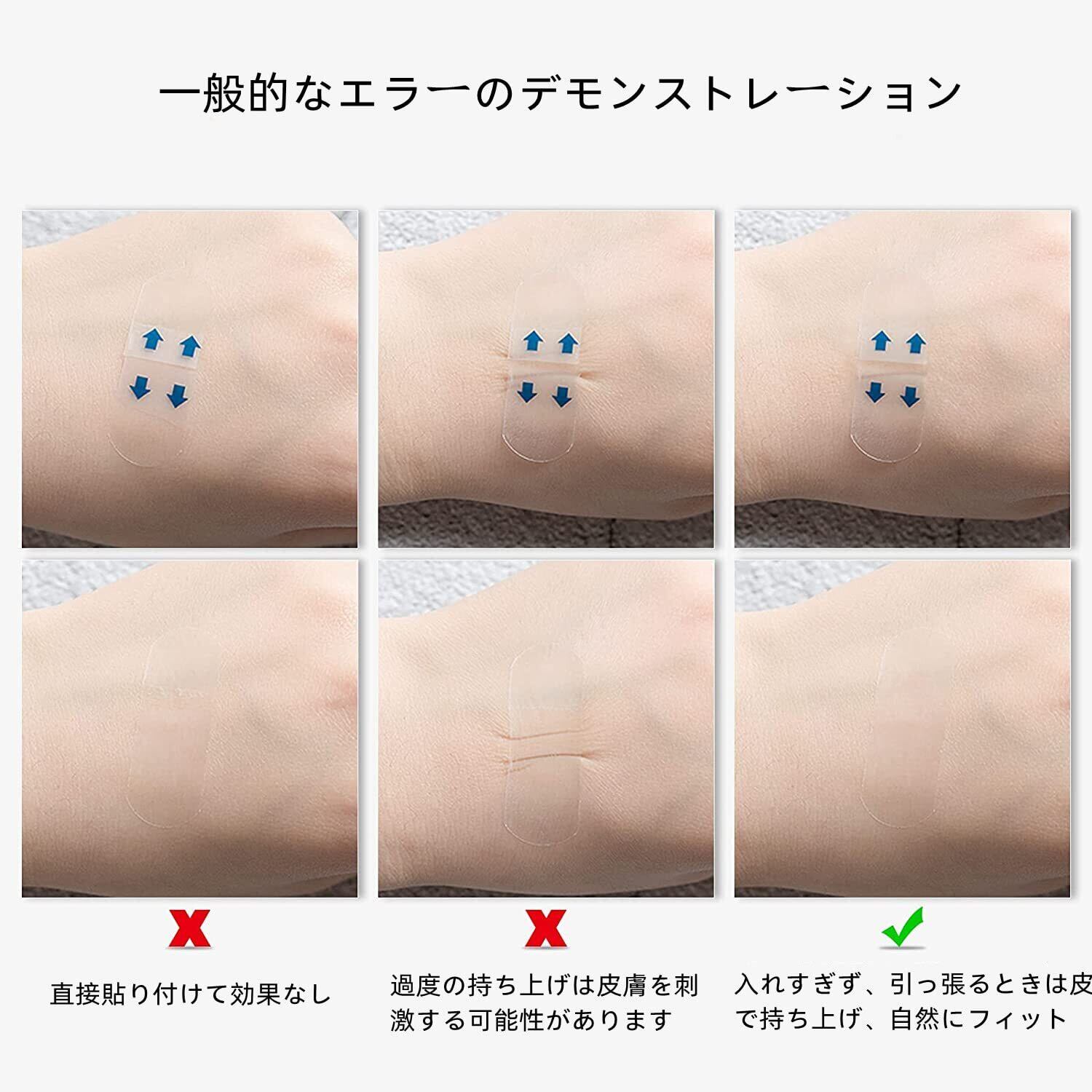【つや消し目立たない】:本社のフェイステープは艶消しで顔に貼ると目立たなく、自然なつけ心地 よいです。またテープの上からメイクもでき、女性が喜ぶ小顔作りの神器です。