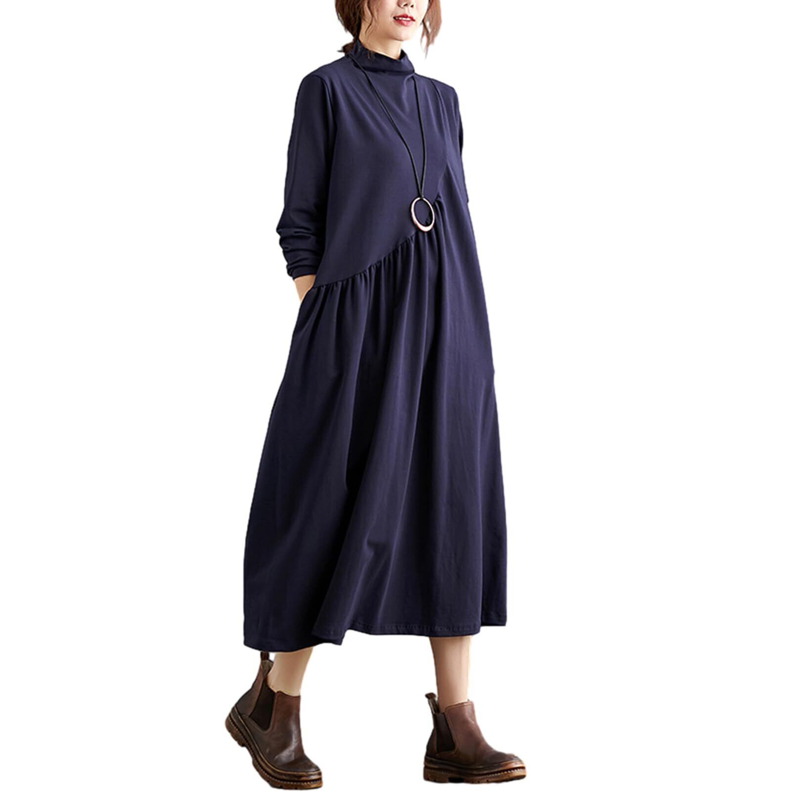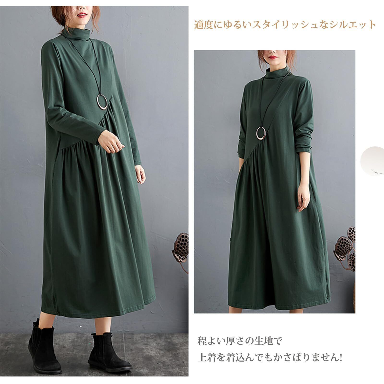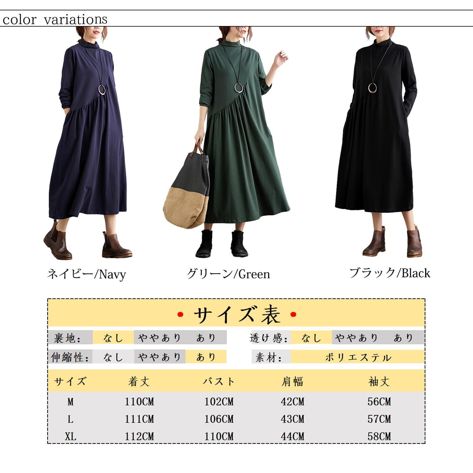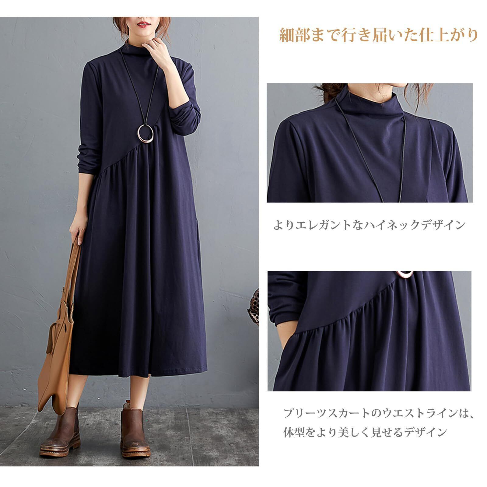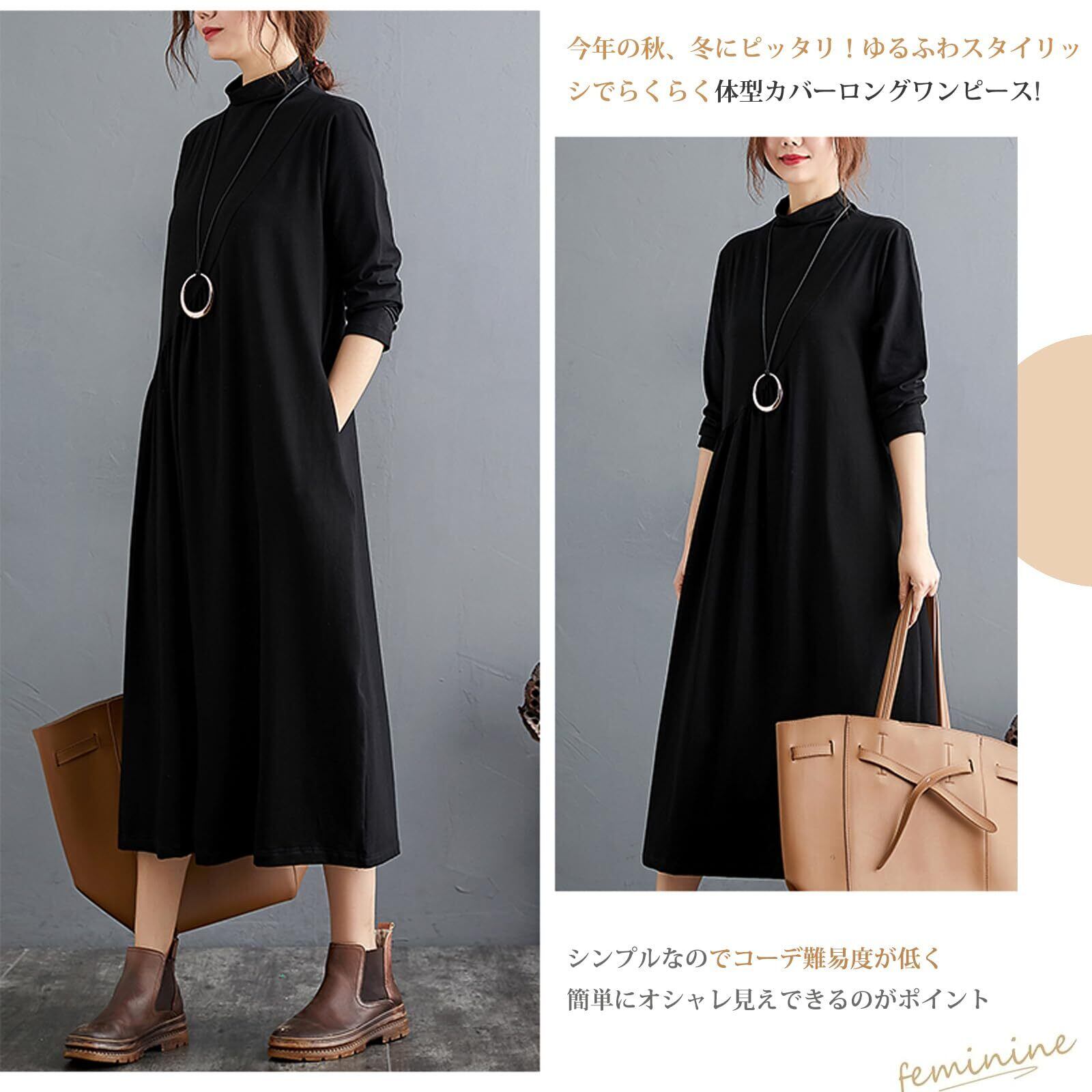 [NONELECEDOLE] ワンピース レディース 無地 ロングワンピース 長袖 ハーフハイネック レトロ シンプル ポケット付き 体型カバー 大きいサイズ 着痩せ ゆったり 普段着 快適 オフィス 通勤 春 秋 冬