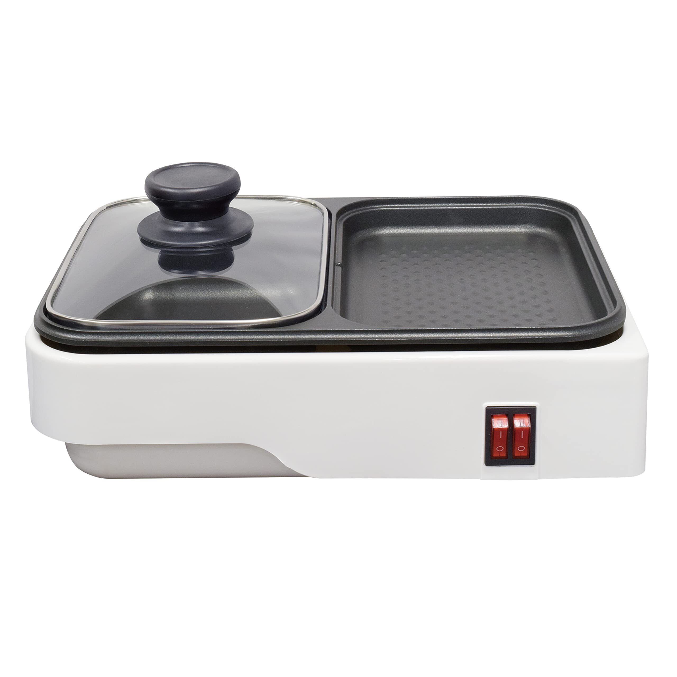 オーム(OHM) 電機 ホットプレート 2WAY 鍋付き 1人用2人用 深鍋&平面プレート 煮ると焼くが一度にできる おひとり様グリル鍋 小型 ミニ 一人暮らし おしゃれ シンプル ホワイト COK-YH100B-W 08-1209