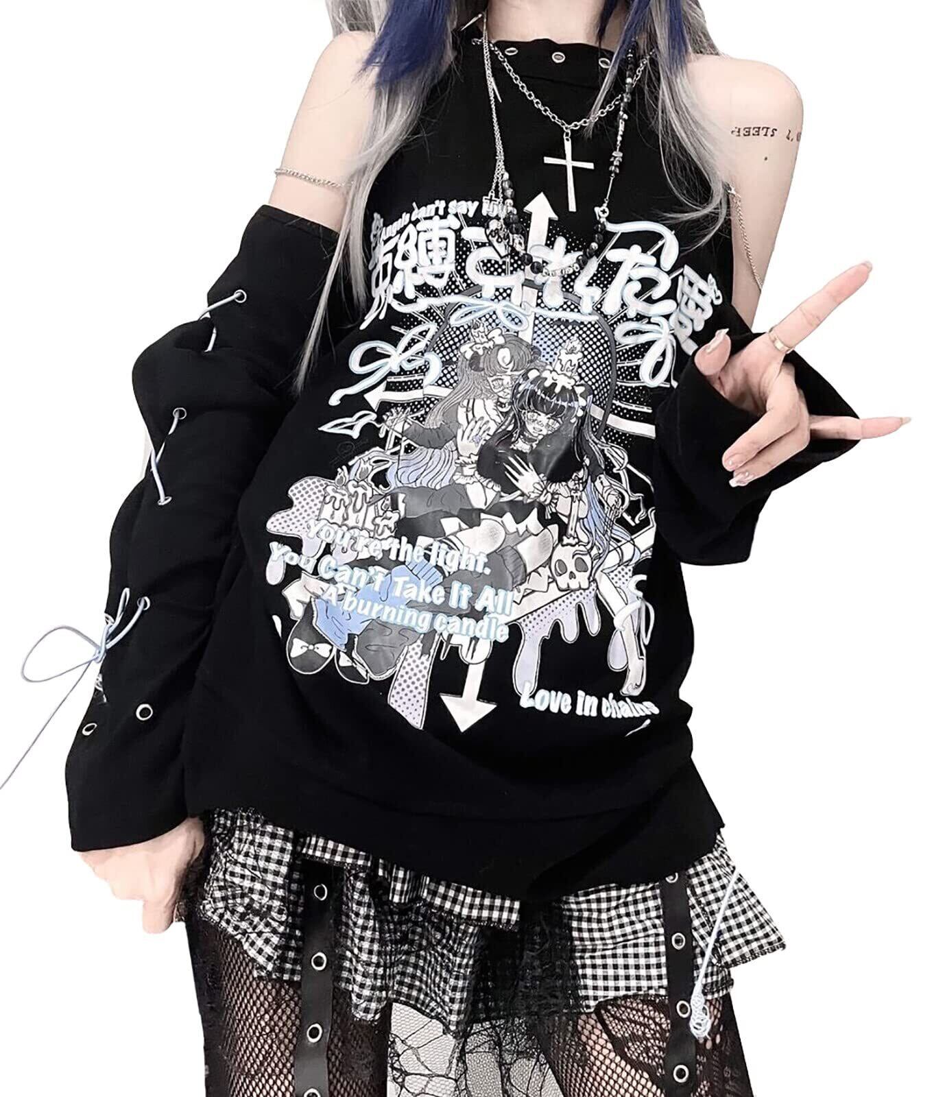 [TOWYYO] Tシャツ レディース リボン付き 肩出し 病みかわいい 服 セクシー 長袖Tシャツ 韓国系 ファッション サブカル系 おしゃれ トップス 地雷系 春 夏 秋