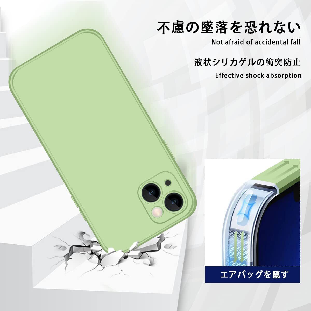 IPhone 13 ケース シリコン さらさら手触り アイフォン13 スマホケース いpほね13 カバー 耐衝撃 液体シリコーン 指紋防止 薄型 軽量 ストラップホール付き 滑り止め 6.1インチ(グリーン)