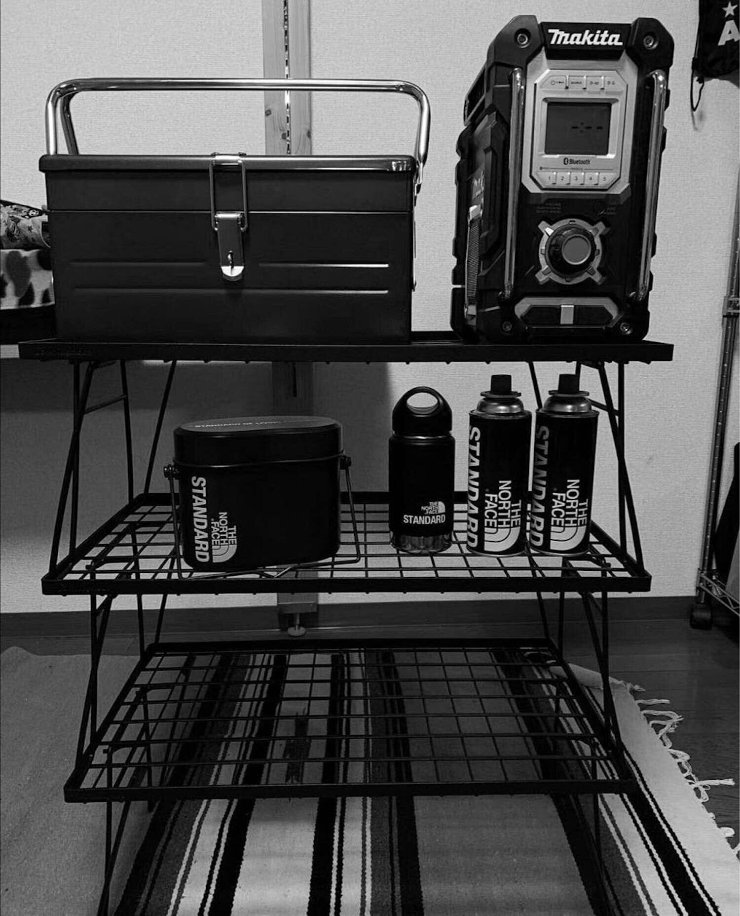 【ある時はラック、ある時はテーブルと、マルチに使える】ギアボックスや小物類を置くのに便利で、2段重ねにすれば、上段に2バーナー、下段に調理器具や食材をおいて、ロースタイルのキッチンカウンターとしても使えます。ロースタイルなキッチンシステムとしても使える。下段があると食材も置けて何かと便利。さらに専用オプションのテーブル用天板を購入すれば、ローテーブルに早変わり。