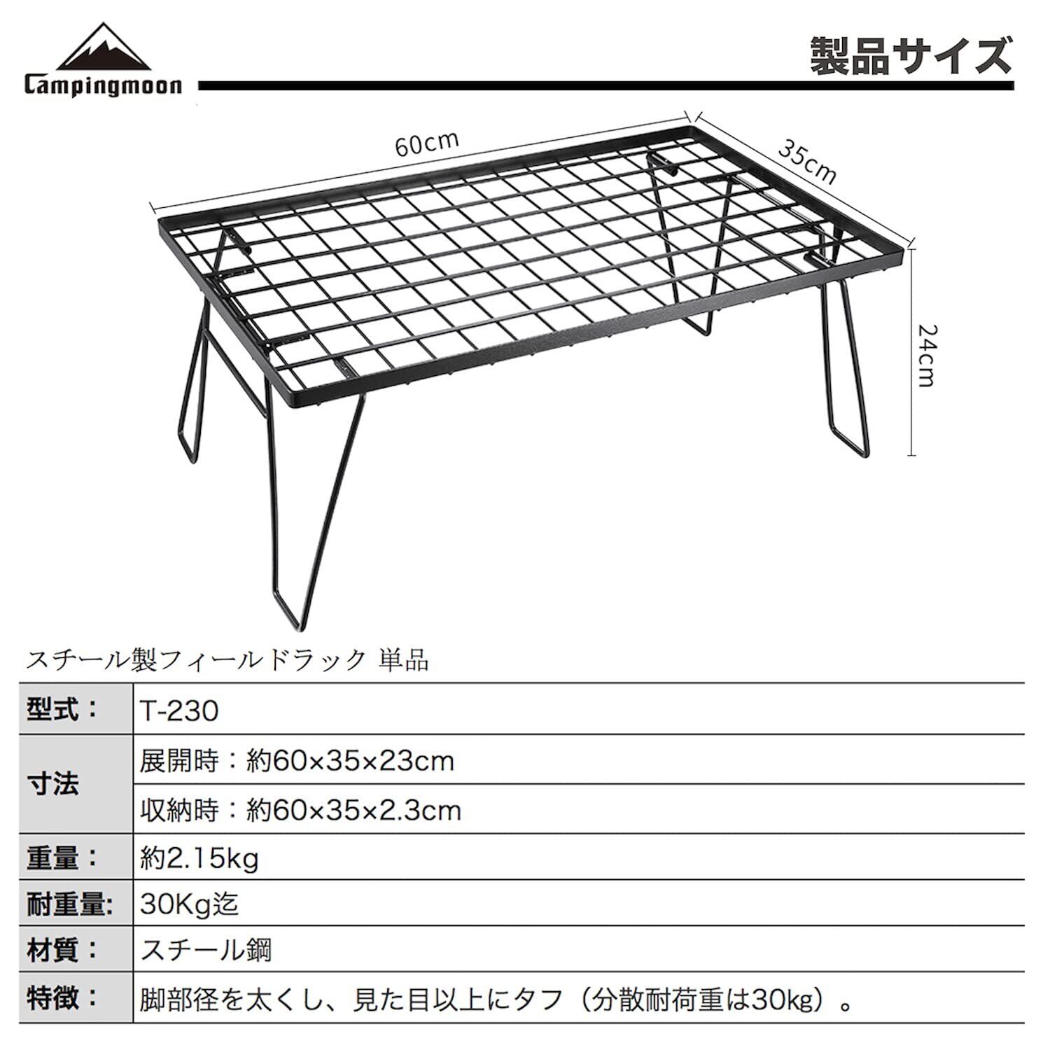 キャンピングムーン(CAMPING MOON) フィールドラック グラウンドラック 折り畳みラック 黒メッキスチール製 T-230