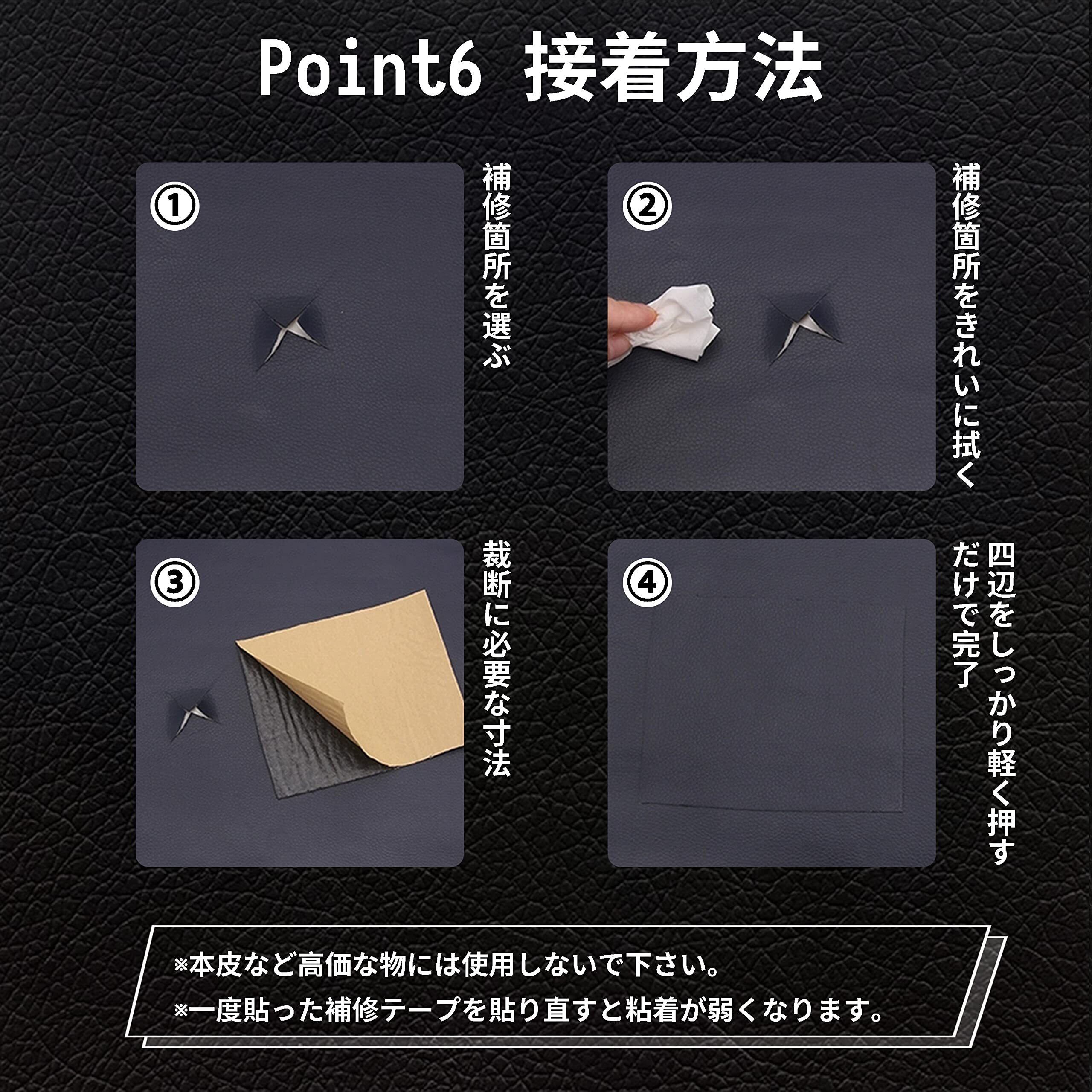 【用途】·この合皮補修シートは、粘着性がある環境に優しいPU合成皮革です。下部の剥離紙を剥がしてからご使用いただけます。· ·ソファや自転車サドル、バイクのシートなど合皮製品の補修·バッグや傘の柄、革小物の修理に·好きな形に切って貼るだけだから手芸や洋裁、小物づくりなどハンドメイドに。使用例:壁紙・内装・インテリア・撮影用スクリーン・小物づくり・ソファーの傷、破れ隠し、椅子の座面張替え、DIYなど。