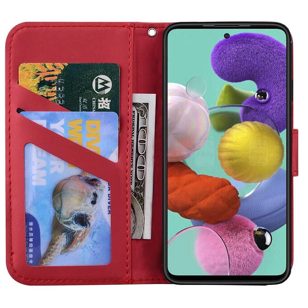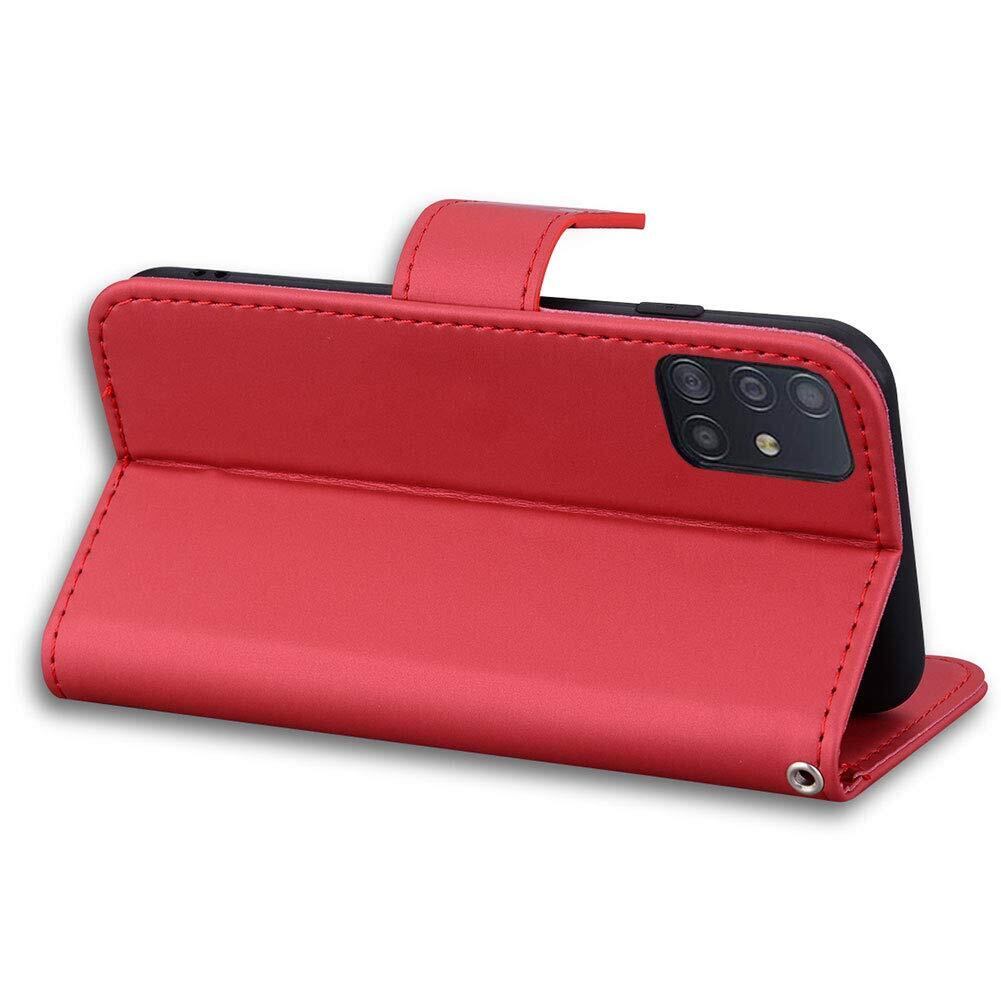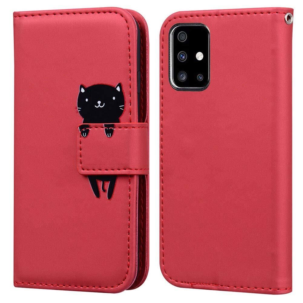 Ailisi 対応 Samsung Galaxy A51 5G ケース 手帳型 サムスン ギャラクシーA51 5G SC-54A docomo/SCG07 au カバー 女性 人気PUレザー財布型 可愛いカバー 緑のカエル かわいい 動物 耐衝撃保護ケース スタンド機能 カード収納 スマホケース (赤/猫)