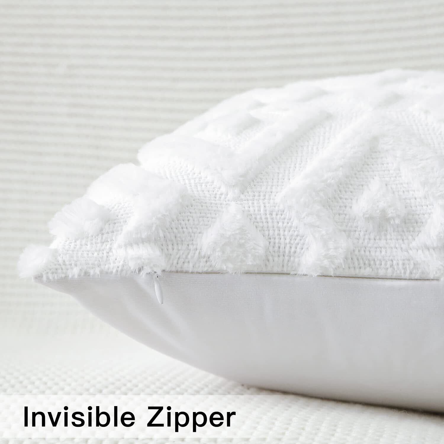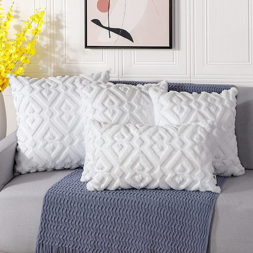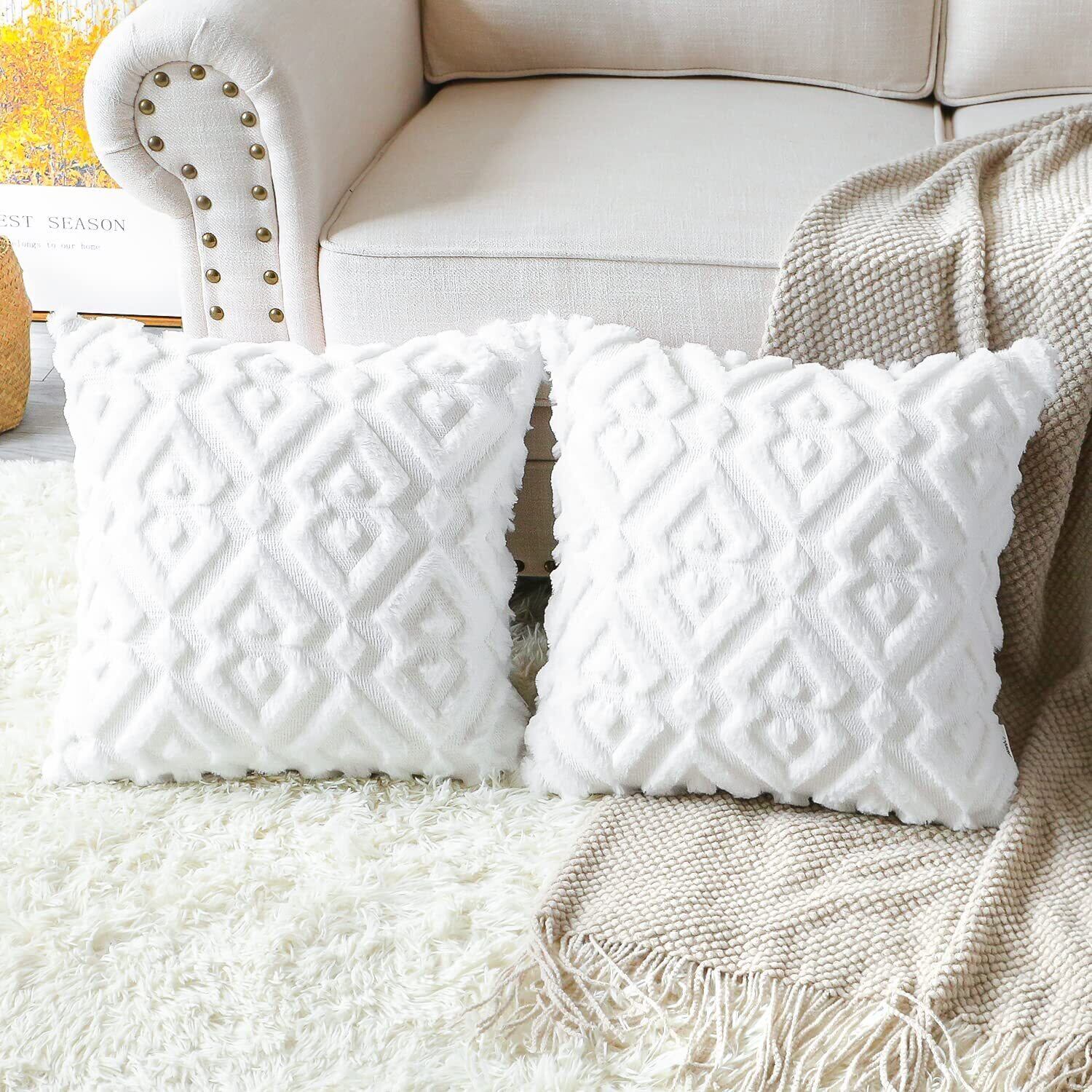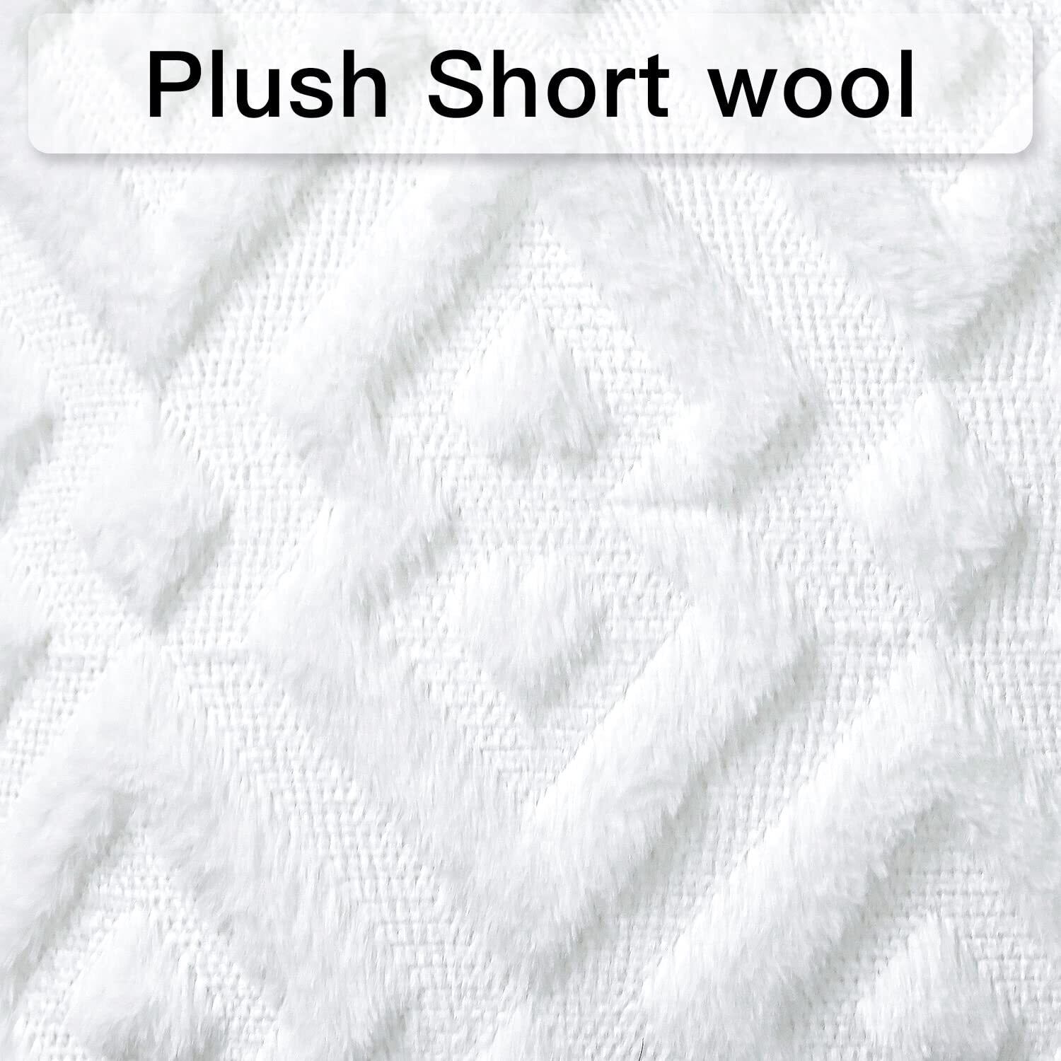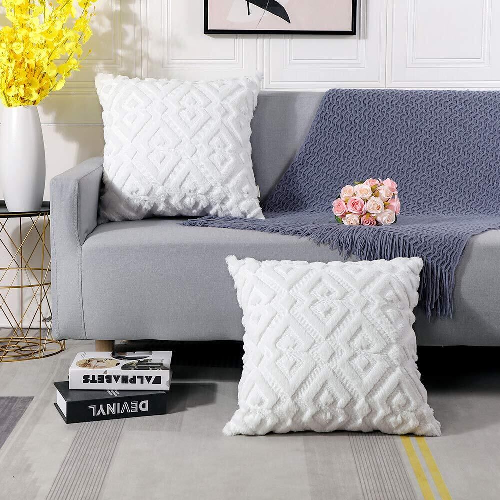OTOSTAR クッションカバー 55x55cm 北欧 2枚セット ショートウール ベルベット おしゃれ 可愛い 柔らかい 柄 ひし形 モダン エレガント ファスナー インテリア ソファー用クッションカバー クッションケース ソファ背当て くっしょんかばー 装飾枕カバー 座布団カバー (ホワイト, 55x55)