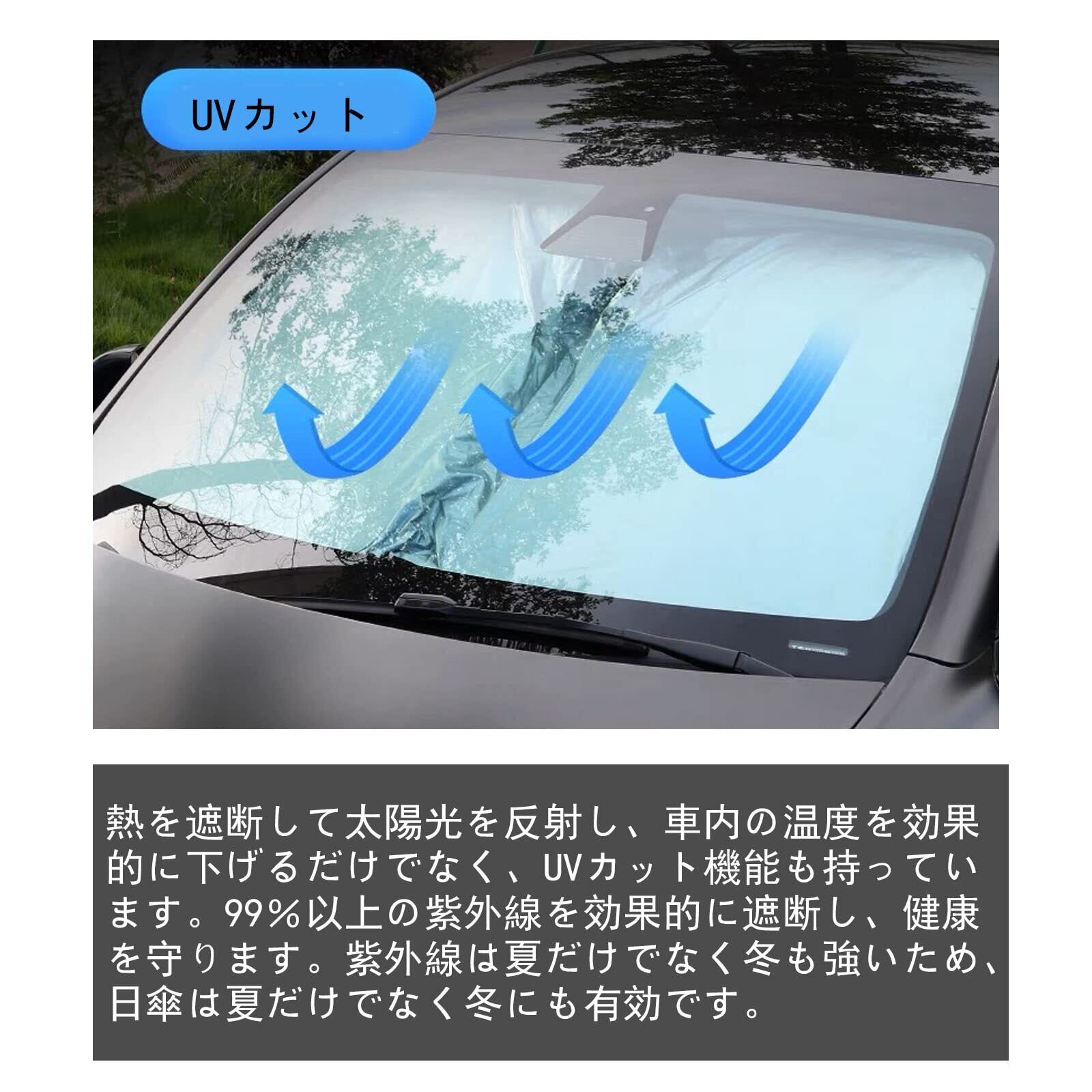 ③多機能:自動車用サンバイザーは、夏の強い日差しを遮り、車内温度を下げる機能を持っています。 ハンドルやシートなど内装の劣化も防ぎます。 また、紫外線は夏だけでなく冬も強いため、日傘は夏だけでなく冬にも有効です。99%以上の紫外線を効果的に遮断し、健康を守ります。