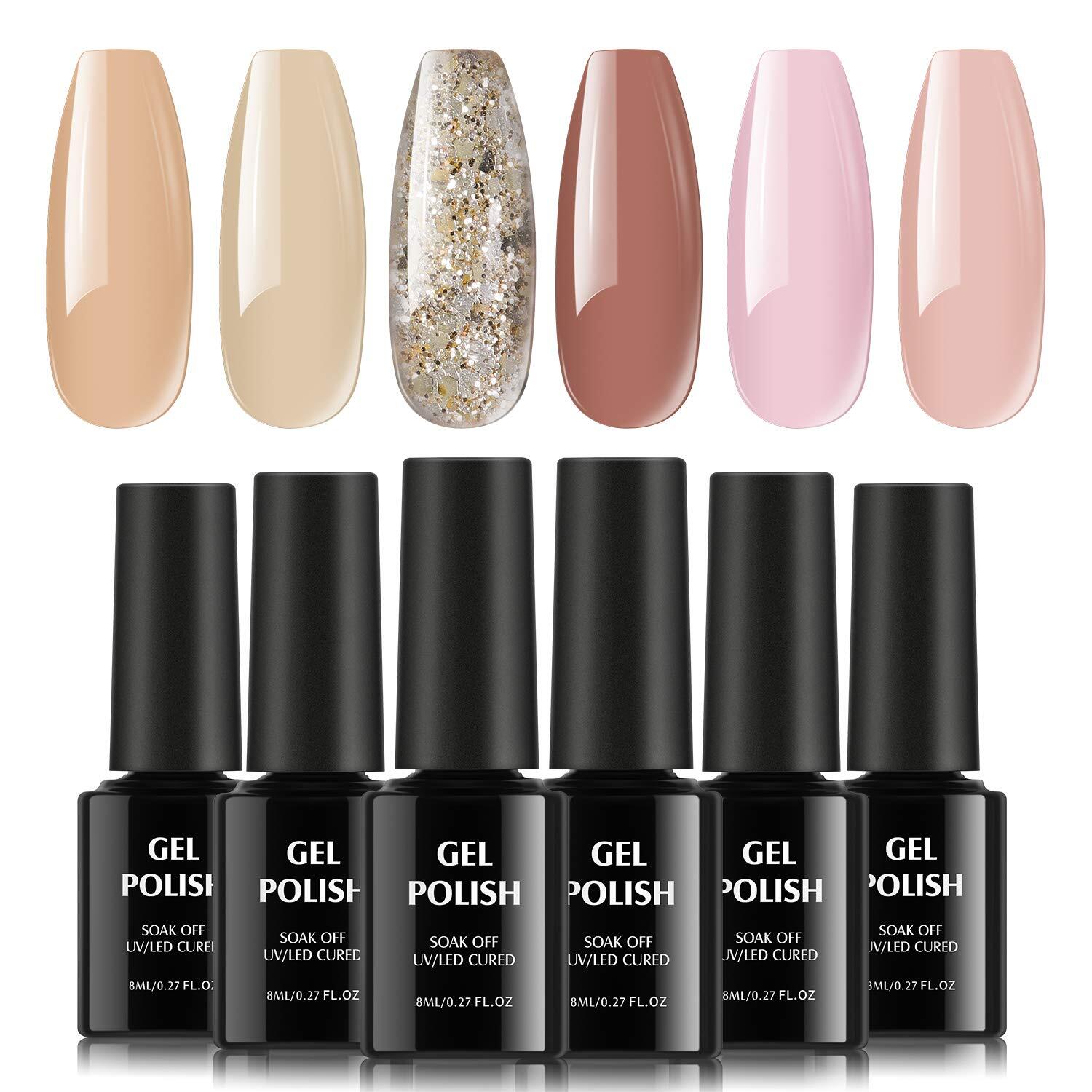 TOMICCA ジェルネイル カラージェル 6色セット 8ml 初心者&プロ適用 ポリッシュタイプ セルフネイル ヌードとラメシリーズ UV/LED対応