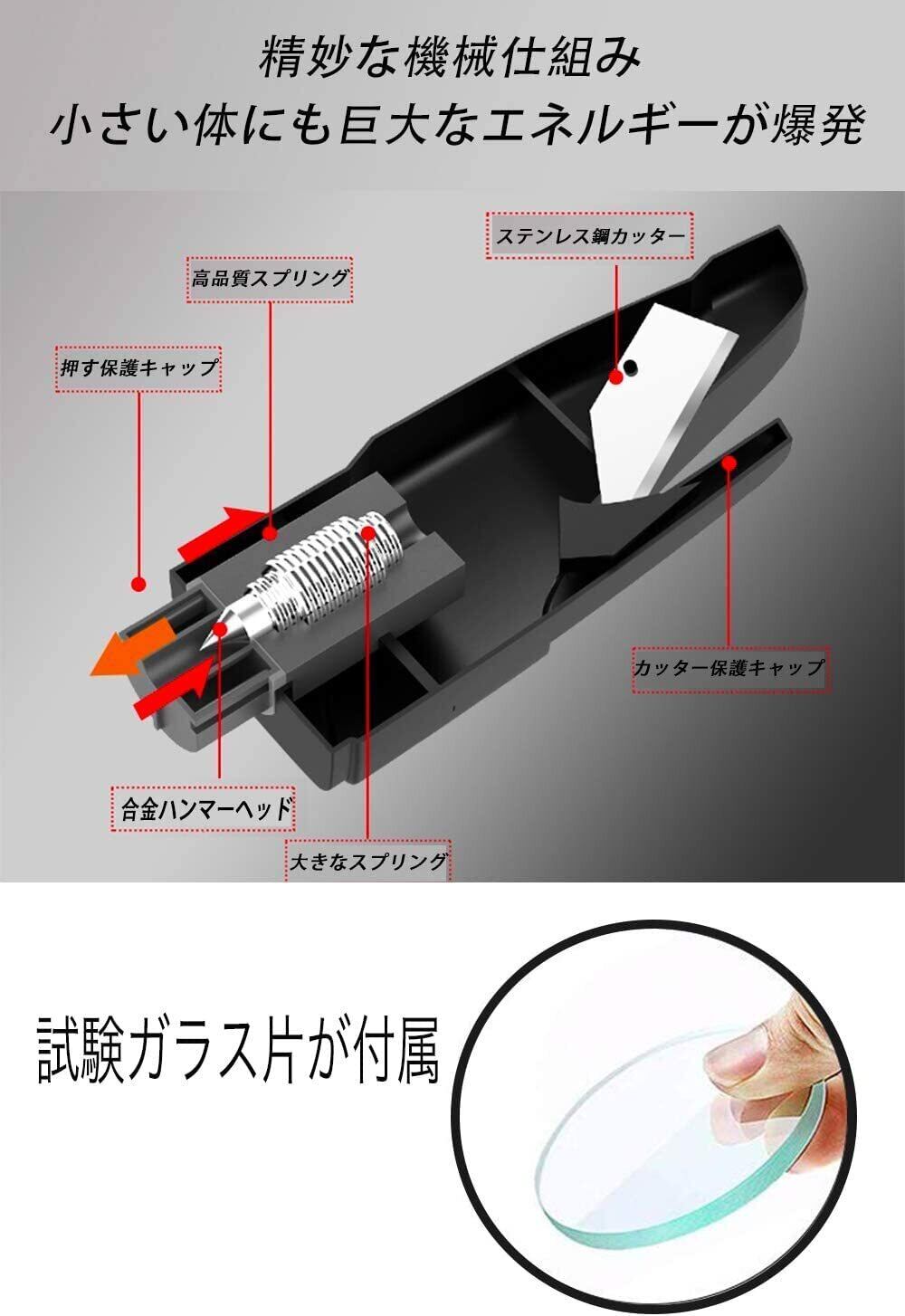 【テスト用ガラス付属&注意事項】ガラス破砕性能を確保するために、テスト用ガラスを付属して、ご自分でガラスを割るテストが体験できます。テストを通じて、製品の使用方法もわかりやすいので、いざという時にもっと素早くに緊急状況を対応できます。テストの時に、割れた破片が飛び回す可能性があるので、必ず防ぐ対策を取ってから、テストを行ってください。