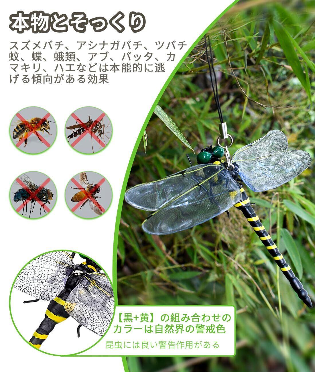 【トンボ虫除け効果抜群】昔から虫除けトンボは飛んでいる様々な小型の虫を捕食するという噂がある,蜻蛉 モデルの形はとてもリアルだ。ミツバチ、蚊、スズメバチ、蝶、蛾類、アブ、バッタ、カマキリ、ハエなどの昆虫に対して優れた警告で反発効果を発揮します。彼らは一定の警戒や逃避行為を示す。トンボの『黒×黄』の組み合わせのカラーは自然界の警戒色なので、虫たちに対してはボウフラと成虫の両方を捕食するため天敵となります