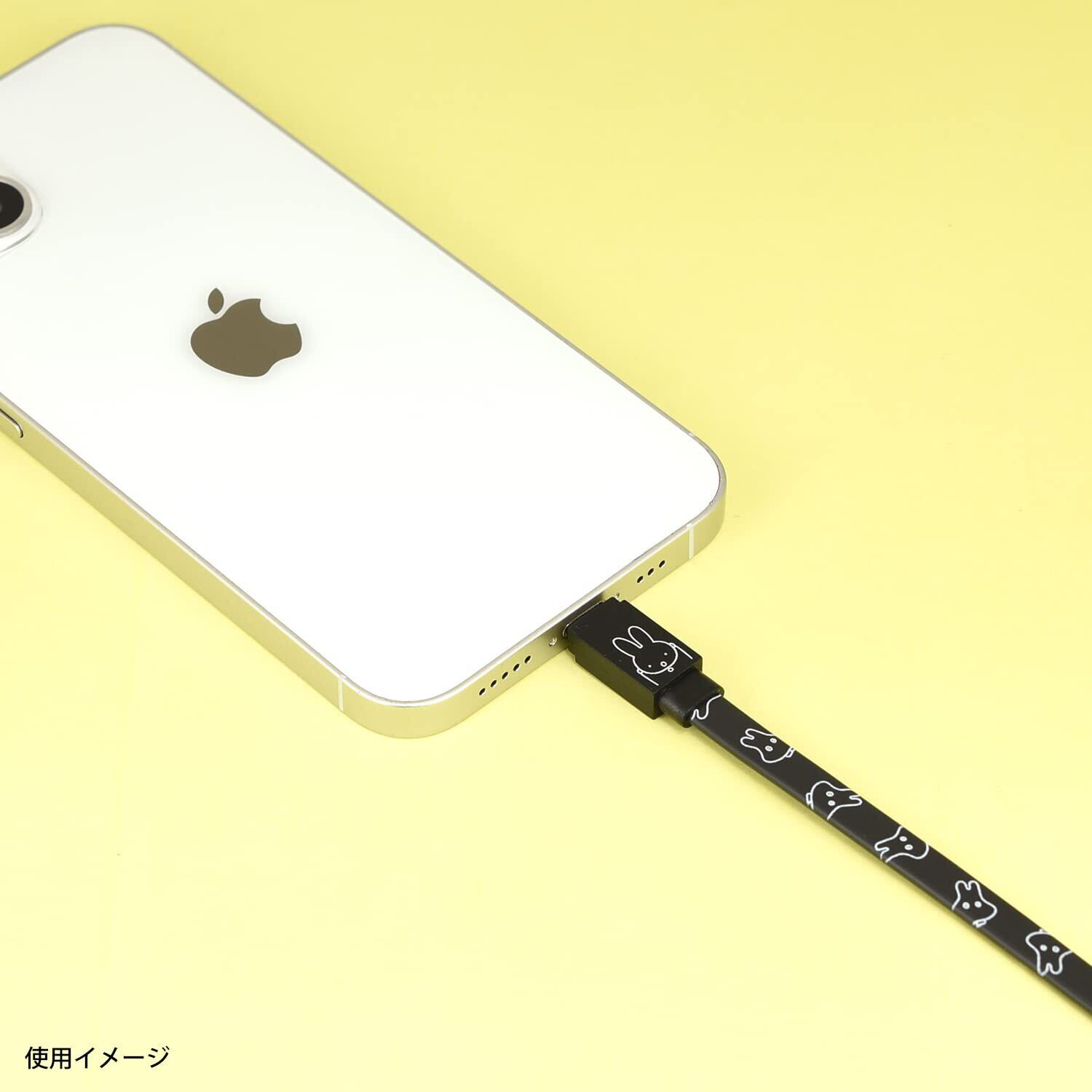 MFi認証を受けたUSB-Lightningケーブルです。絡まりにくいフラットなケーブル。iPhone・iPad・iPodのデータ転送・充電が可能です。ケーブルの長さ120cm。裏表の区別なくリバーシブルで使用できます。お客様のお使いのモニター設定、お部屋の照明等により実際の商品と色味が異なる場合がございます。諸般の事情につき、予告なくデザインや仕様が変更になる場合があります。Illustrations Dick Bruna © copyright Mercis bv,1953-2022 www.miffy.com