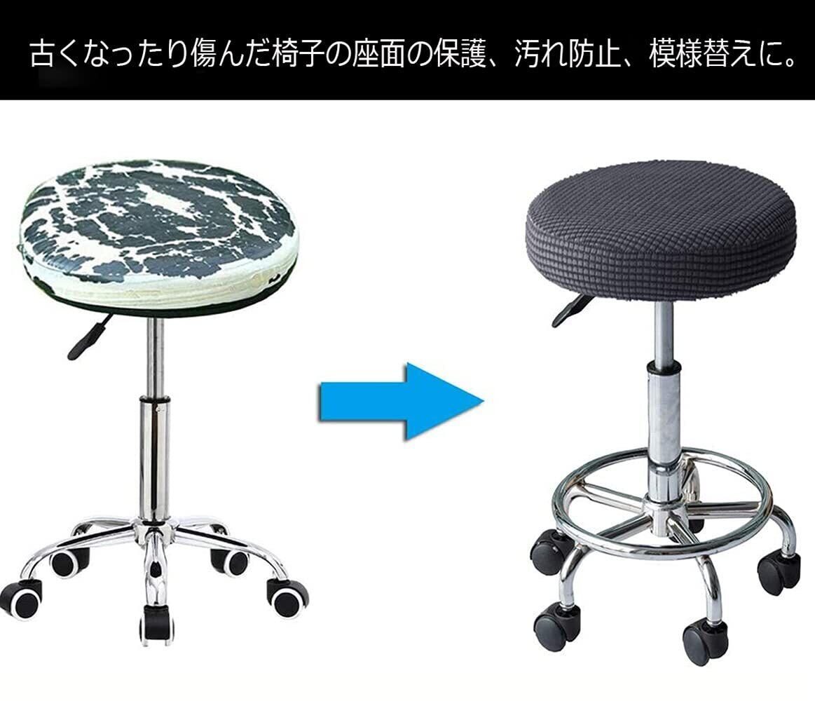 【取り付け簡単】取り付けが簡単で、スツールの上に滑り込ませます。伸縮性のあるエッジにより、安定して押し込まれます。洗濯可能な素材ですので、清潔にお使い頂けます。