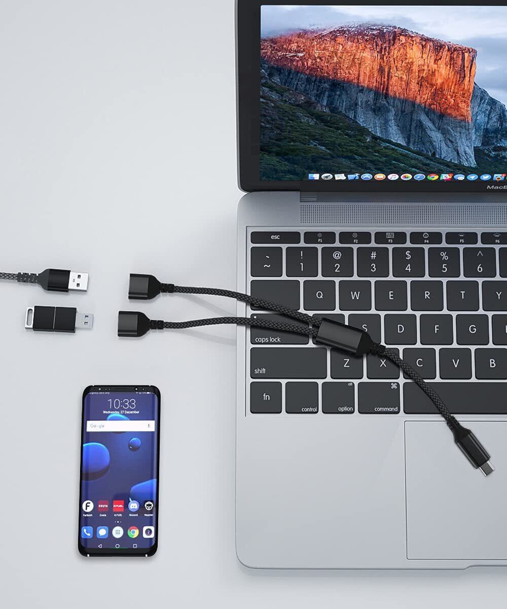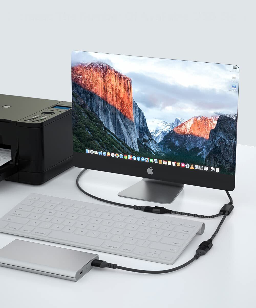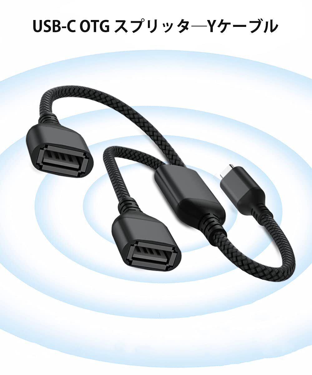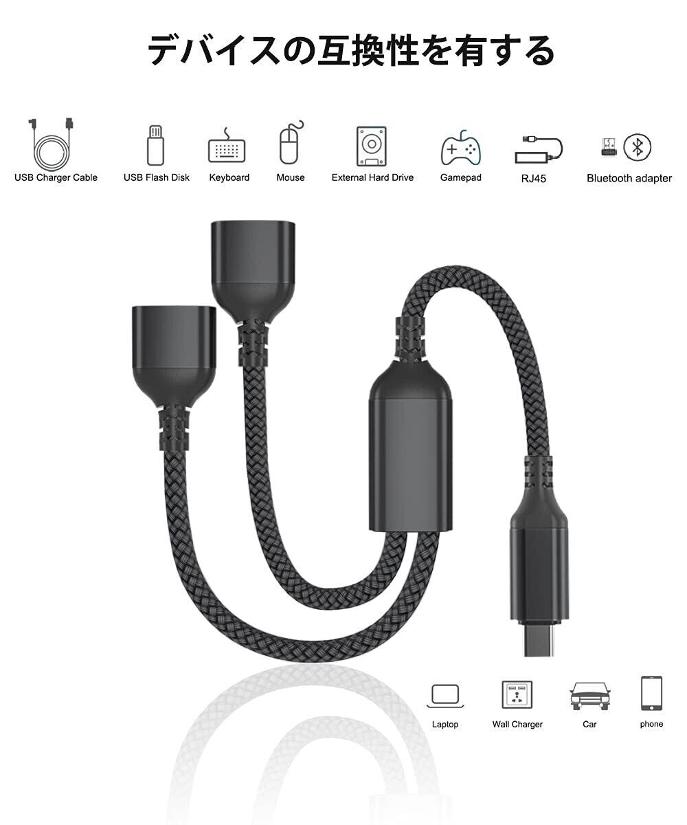 Basesailor USB-C OTG スプリッタ―Yケーブル 0.3M、Typeタイプ Cオスから2 USB A 2.0 メスへの延長コード コンバーター、デュアルダブルUSBポート 延長Hubスプリット 変換アダプターコネクタ、が対応可能MacBook、iPhone 16 16e 15 Pro Max、iPad 10 Pro Air 第6世代、Samsung Galaxy S24 S25