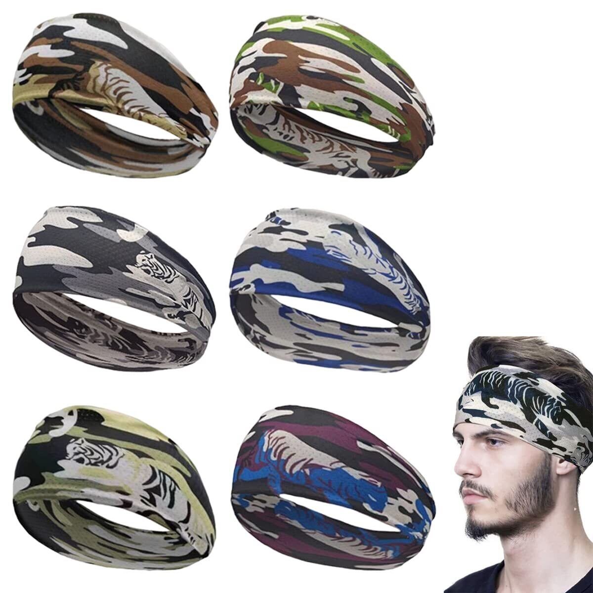 [Kemxing] 6本 迷彩 男性 ヘッドバンド 、弾性 アイスシルク 吸汗速乾 汗止めバンド、軽量 ヘアバンド 通気性 スポーツターバン ために ランニング 筋トレ 自転車 フィットネスヘッドバンド 洗顔用 男女兼用