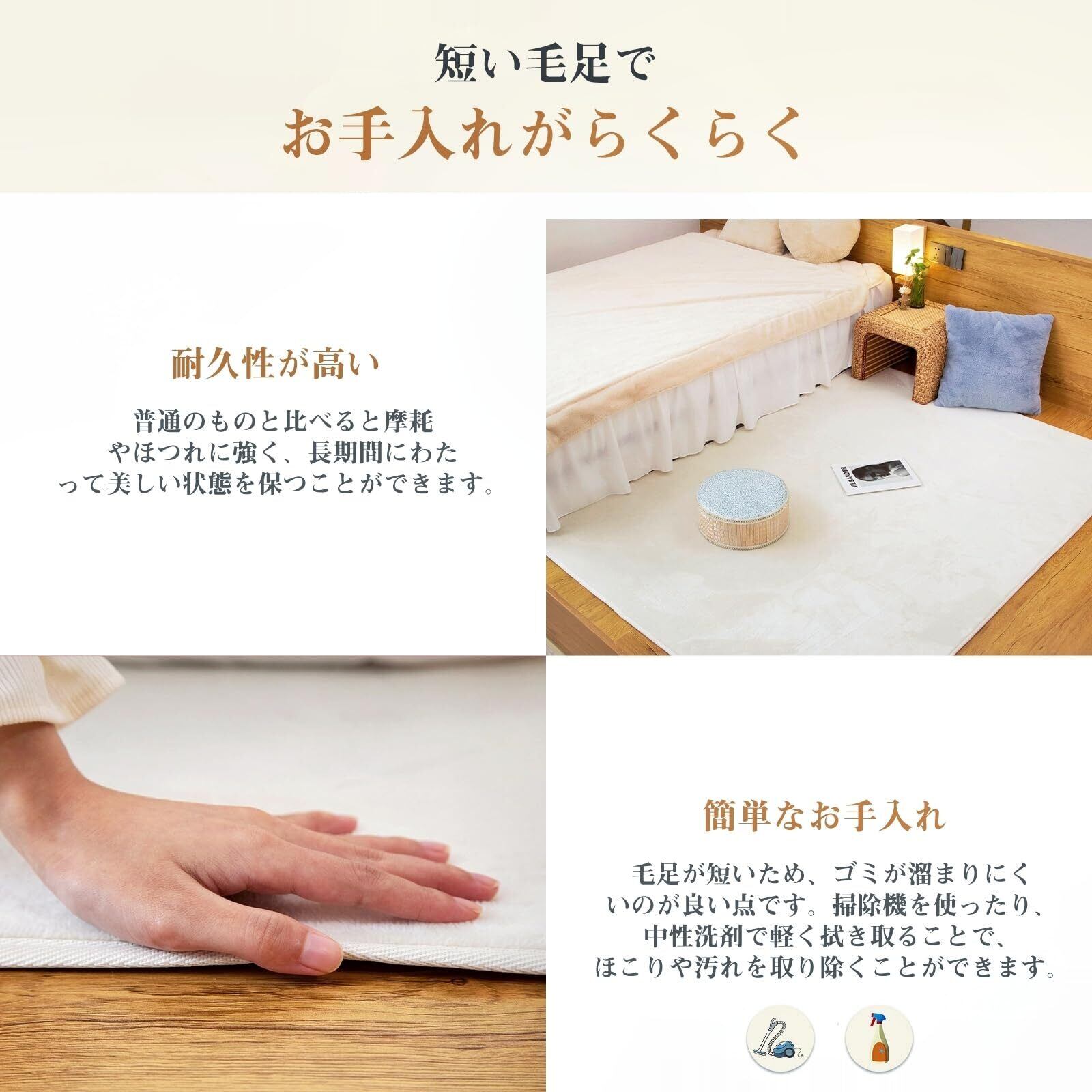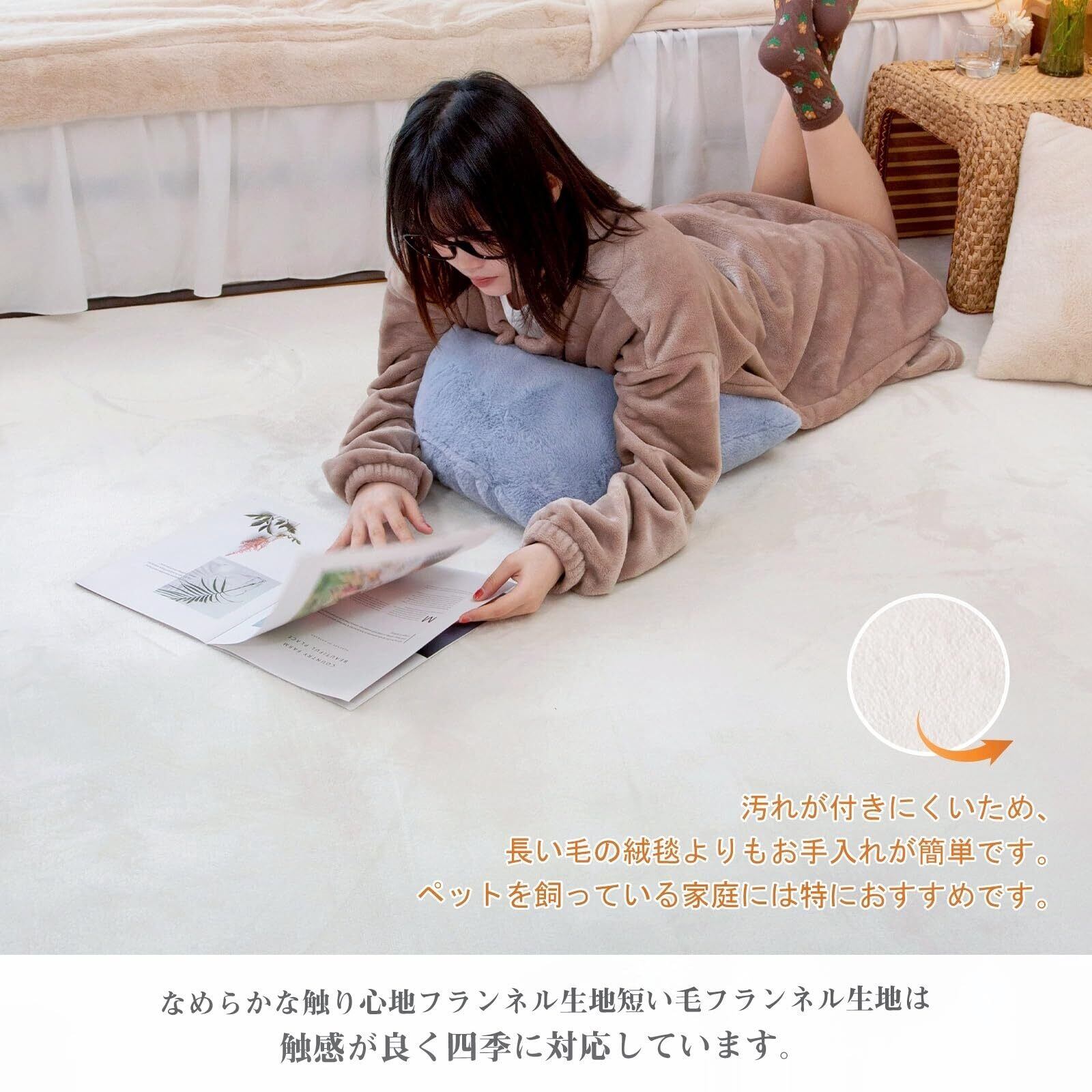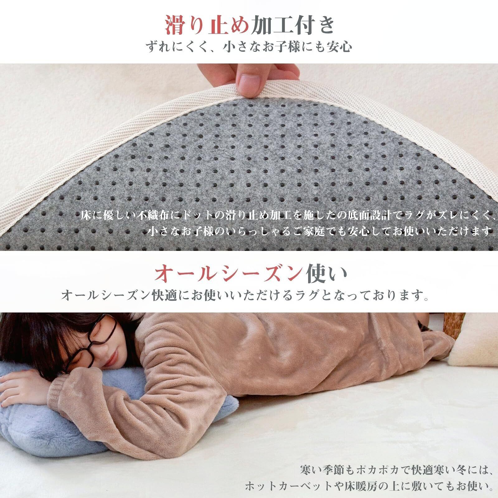 【オールシーズン快適ラグ】高品質のショートパイルフランネル素材が肌触りの良い通気性を実現。裸足でも気持ちよく、季節を問わずサラサラとした肌触りで快適にお使いいただけます。冬場の床暖房にも対応しています。