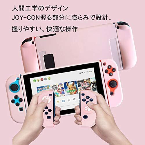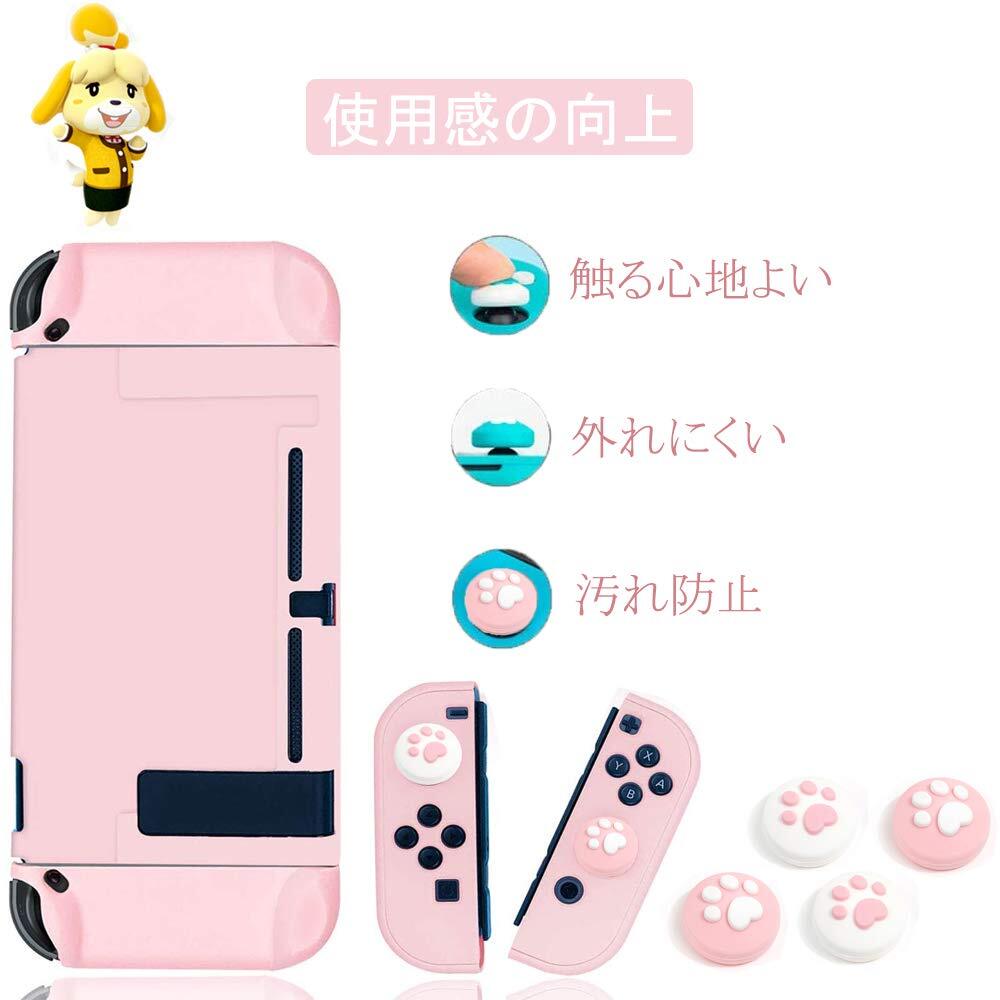 Switch用カバー&ジョイスティックカバー スイッチ用ケース アナログスティックカバー 4x猫爪肉球 Joy-Con用 全面保護ケース 耐久性tpu素材 キズ防止 衝撃吸収 着脱簡単 擦り傷防止 取り外し可能 指紋防止 可愛い (ライトピンク)