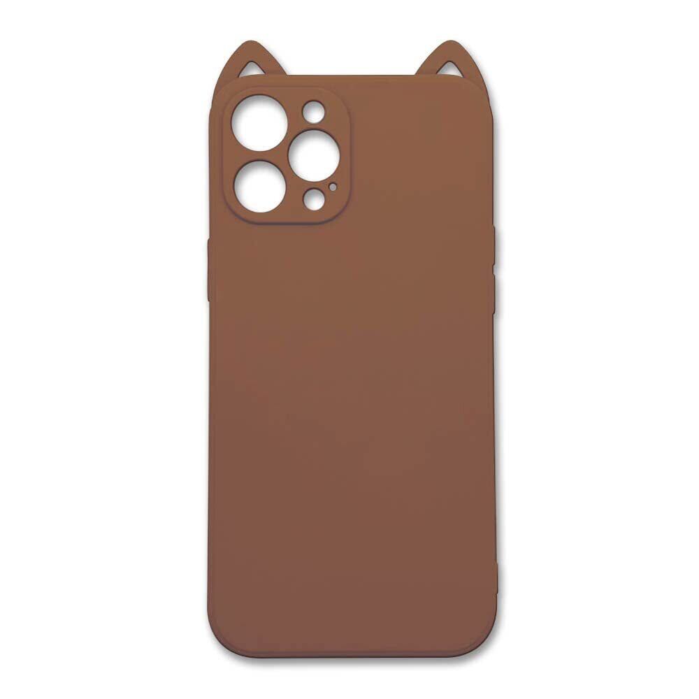 sslink iPhone12 Pro Max アイフォン12プロマックス 対応 ケース 猫耳 (マットブラウン) くすみニュアンスカラー シリコン ねこ アニマル 耐衝撃 衝撃吸収 カバー おしゃれ 韓国 スマホケース TPU ソフト かわいい 薄型 アイフォン