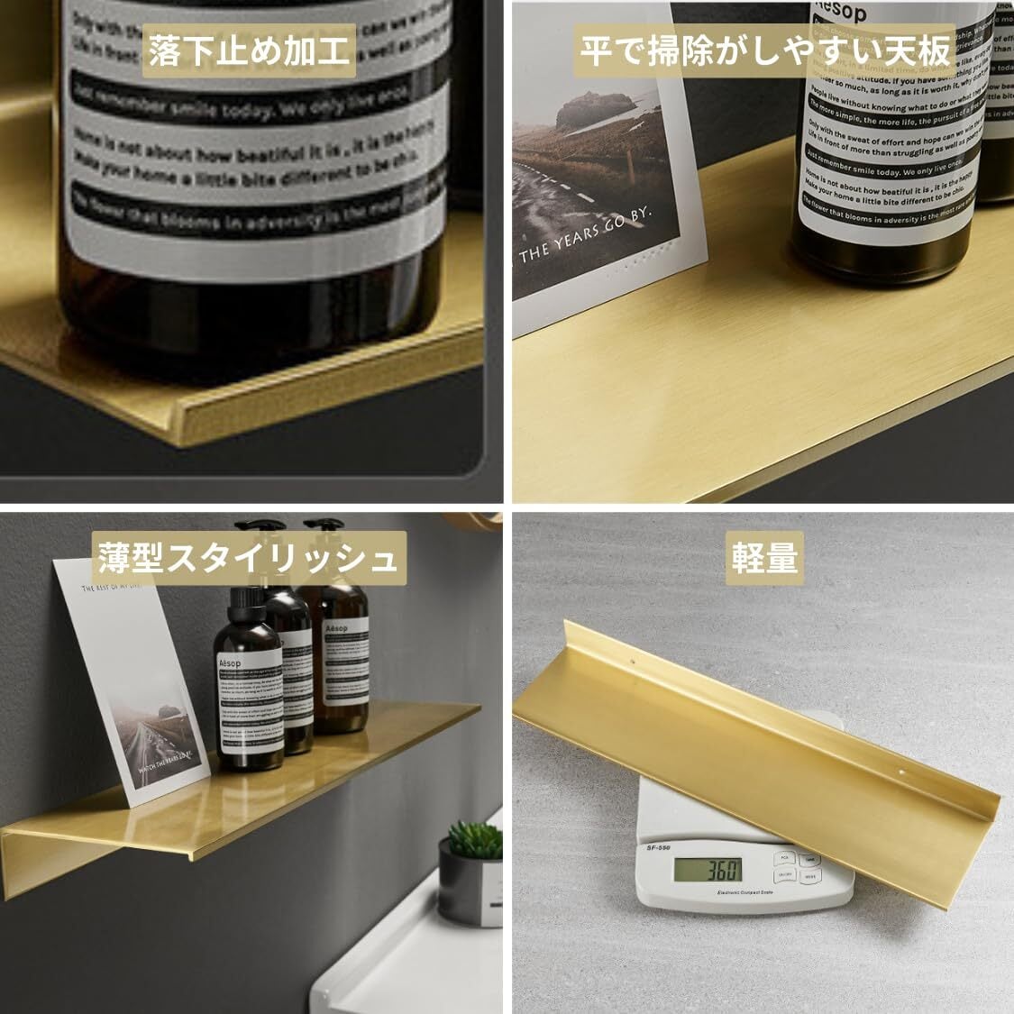 adelphos ウォールシェルフ 横幅30/40/50cm 壁掛け棚 アイアン 真鍮カラー ゴールド WS1G (30cm)