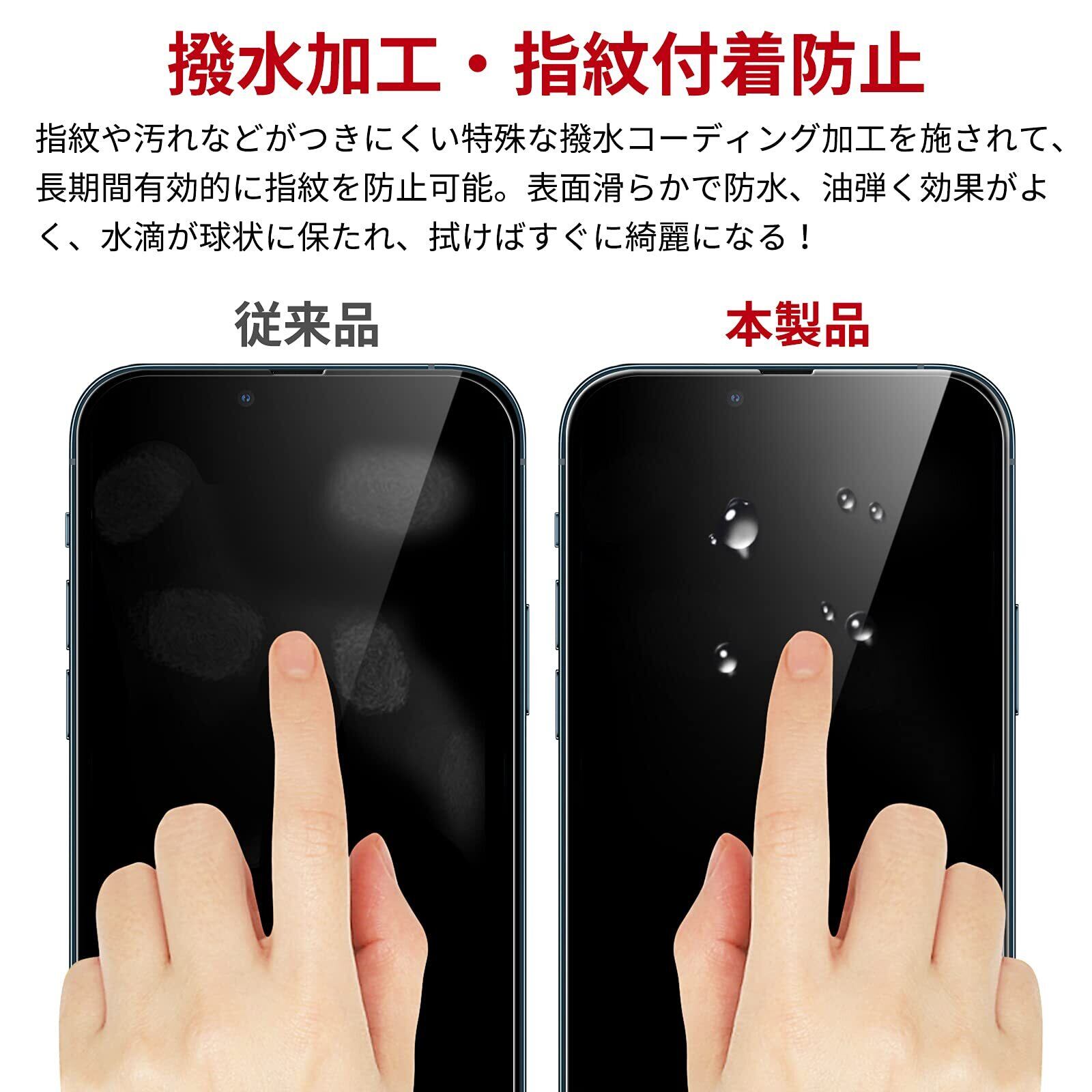 ✩指紋付着防止・気泡ゼロ・貼り付け簡単:指紋や油分・水分など汚れがつきにくい特殊な撥水コーディング加工を施されて、長期間有効的に指紋を防止可能です。表面滑らかで防水、油弾く効果がよく、水滴が球状に保たれ、拭けばすぐに綺麗になります。自己吸着のタイプで、液晶画面の位置を合わせて軽く置くだけで気泡がなく綺麗に貼れます。