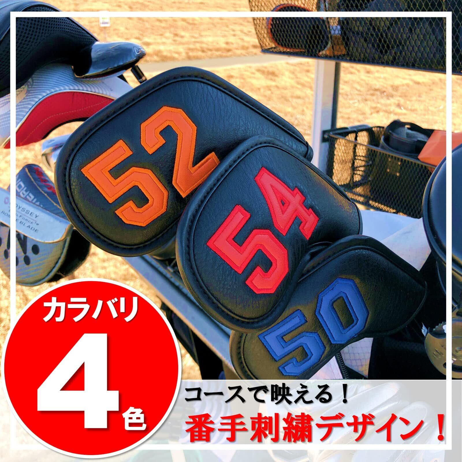 【単品販売】Greenieウエッジカバーは、単品でお買い求めいただけます。番手表示は、48・50・52・54・56・58・60度の7種類、カラバリは4種類!お使いのクラブに合わせ、お選びいただけます!