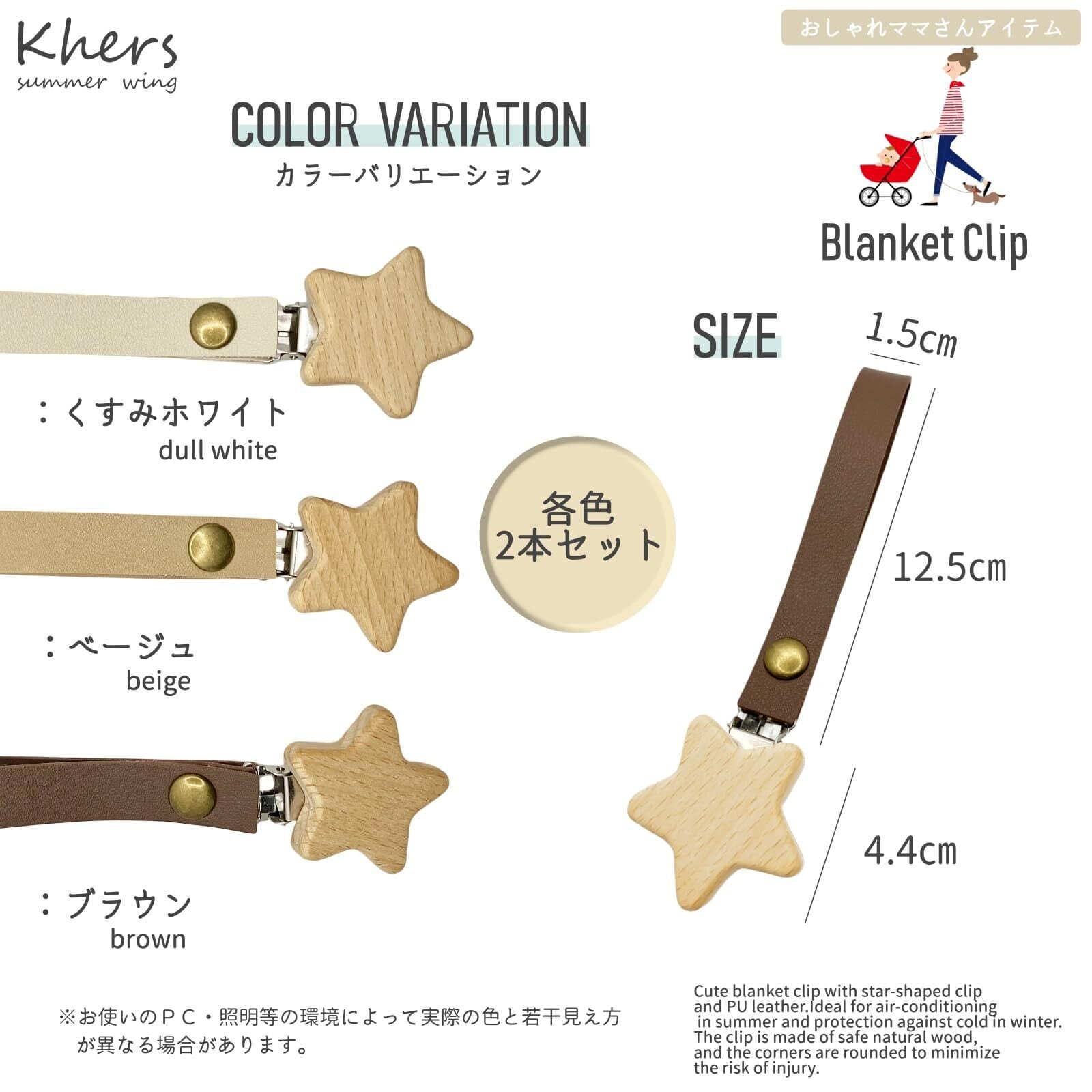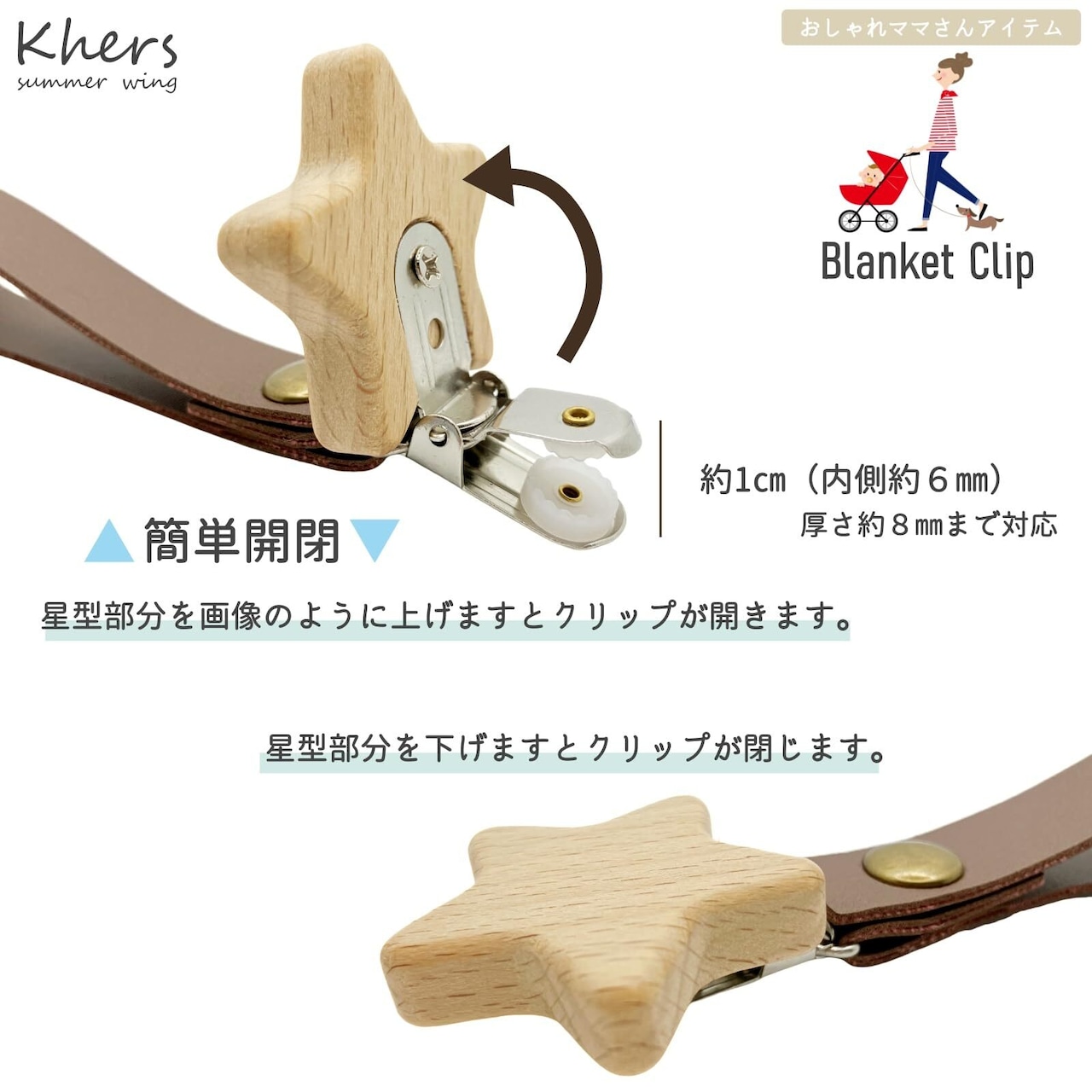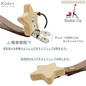 天然木製星型クリップとニュアンスカラーのPUレザーがおしゃれでかわいいブランケットクリップ。