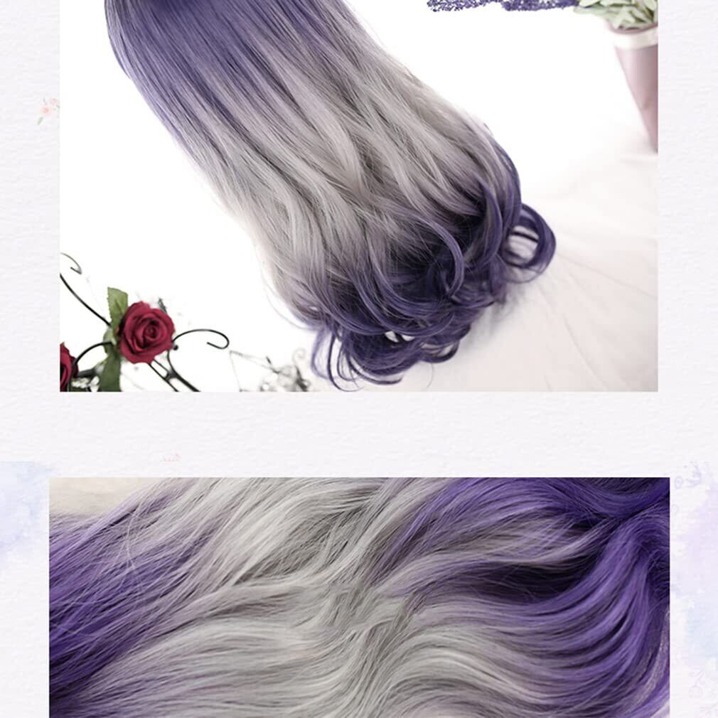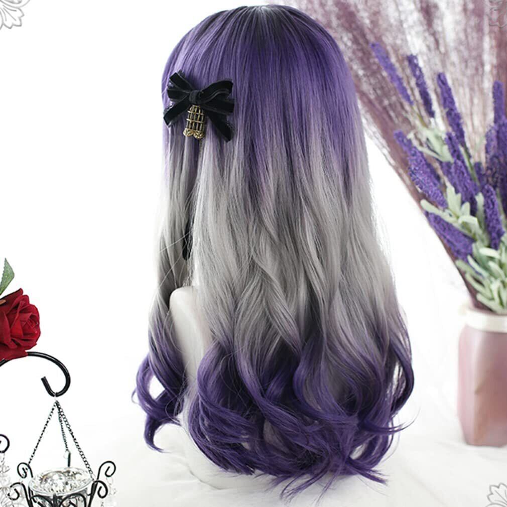 ウィッグ ロリータ ゴスロリ コスプレ 紫 灰色 グラデーション ロング カール 原宿風 GAL系 かつら wig 森ガール ゆめかわいい お姫 小顔 耐熱 パーティー ハロウィン 仮装 演劇 日常
